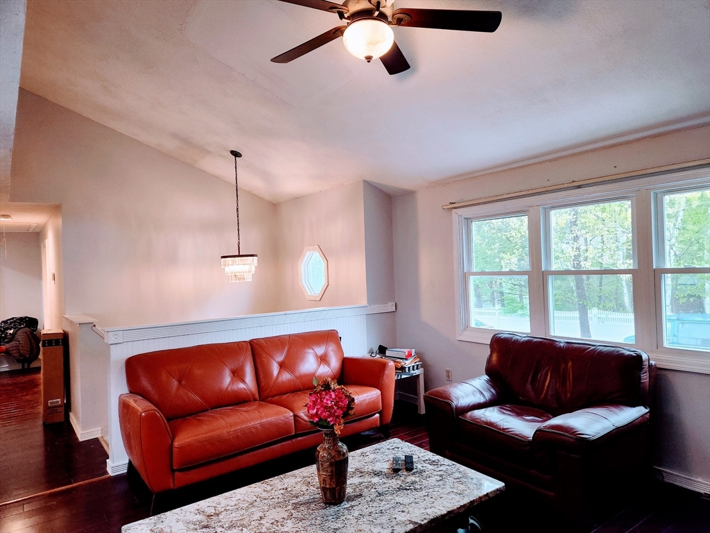 Get up to 3% cashback towards buyer closing costs with this spacious and flexible 5-bed, 2-bath home on a quiet dead-end street! The upper level boasts a sun-filled living room with soaring vaulted ceiling, recessed media area, and gleaming hardwood floors. The granite & tile eat-in kitchen with SS appliances opens to a deck overlooking a fenced backyard. 2 bedrooms and a full bath with granite vanity, tile flooring, and laundry hookups. The lower level offers in-law potential with a separate entrance, 1-3 bedrooms, eat-in kitchen, 3/4 bath, ceramic tile floors, and a laundry. Major updates include roof (2020), furnace (2021), and windows (2023). Freshly painted and move-in ready! With 10 off-street parking spaces and a prime location near Concord River, Nutting Lake, Winning Pond, Greenough Dam trails, Cabot & Ralph Hill conservation areas, plus golf, shopping, schools, childcare, community college, and commuter routes, this home blends comfort, flexibility, and convenience!