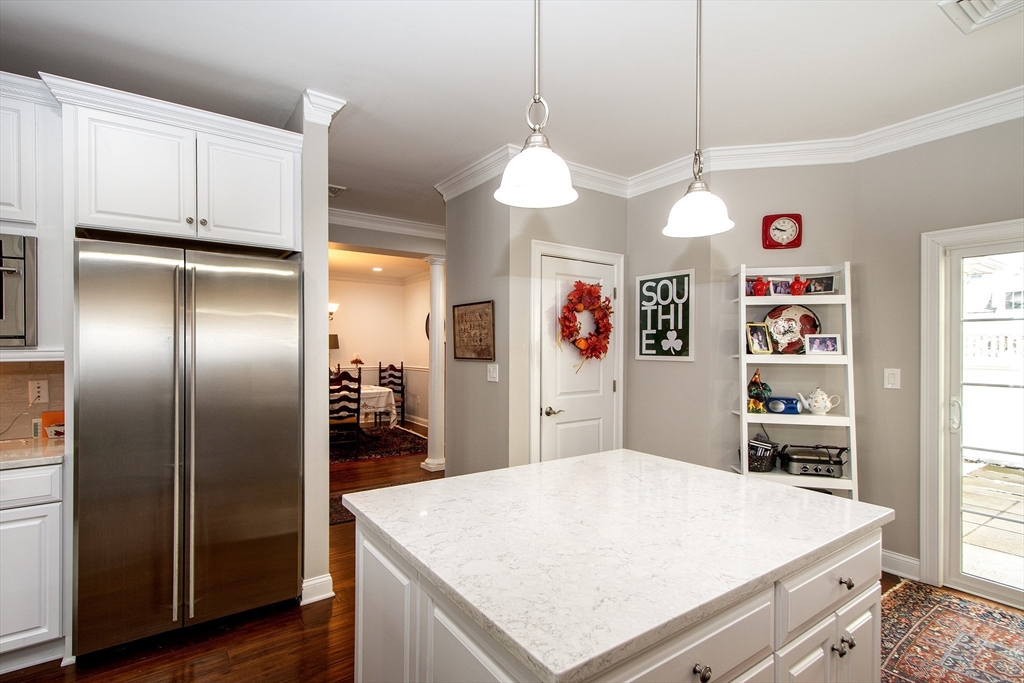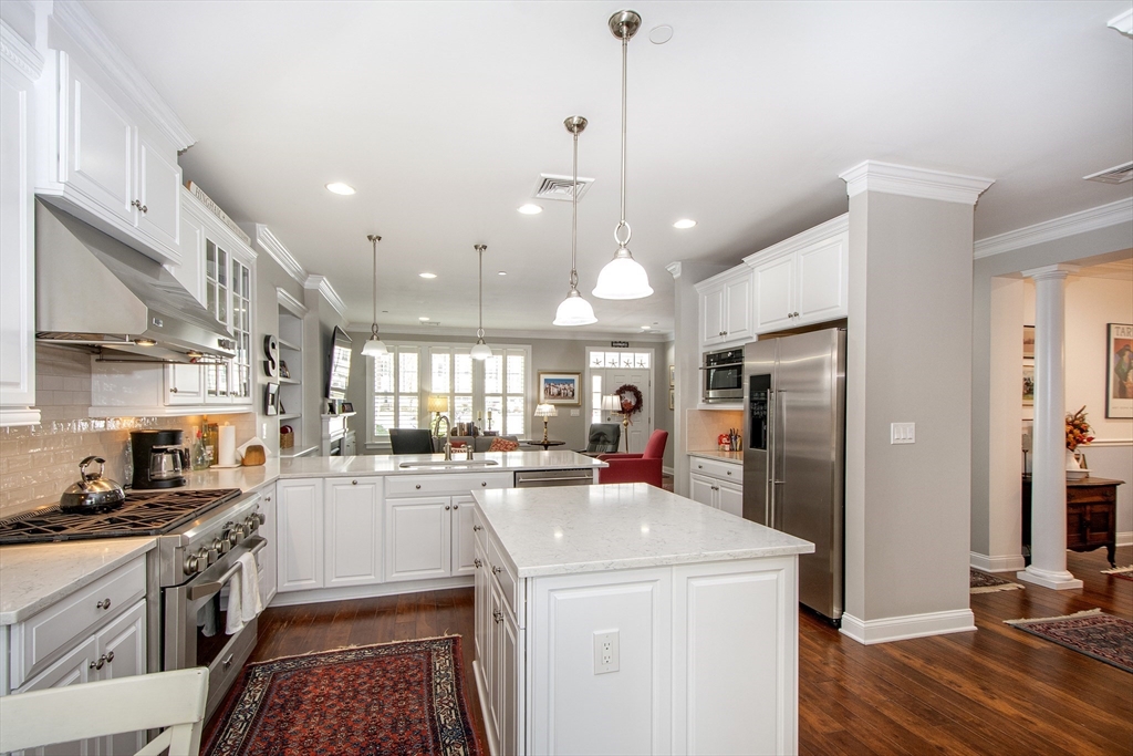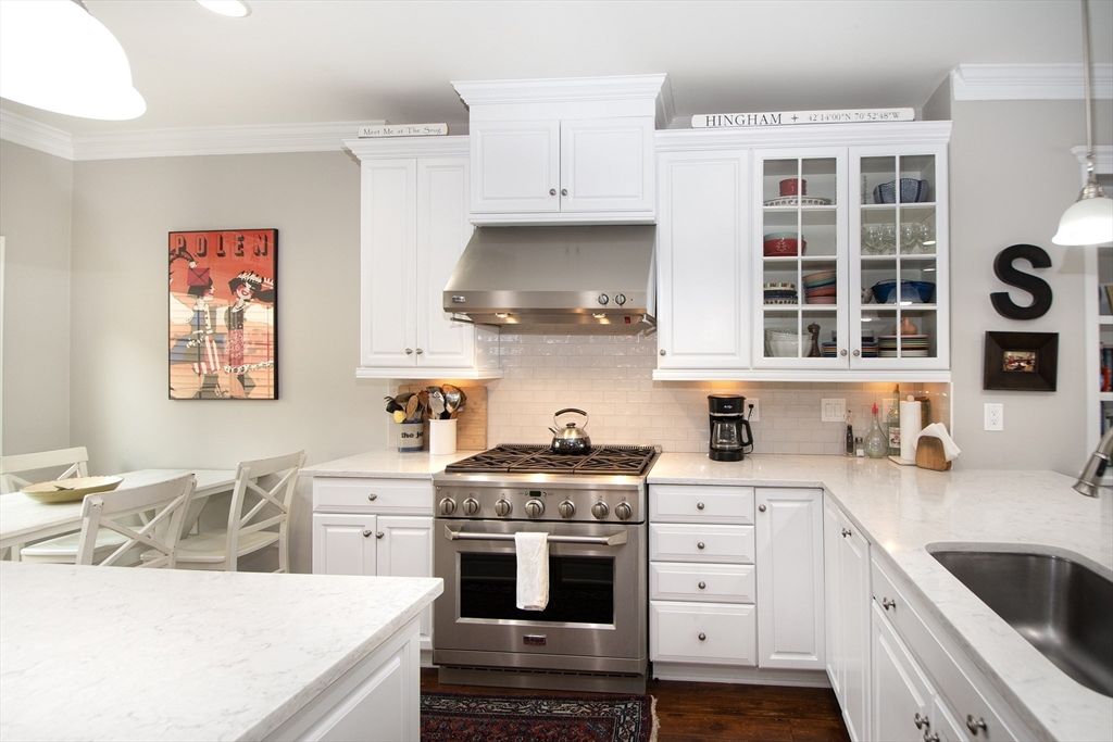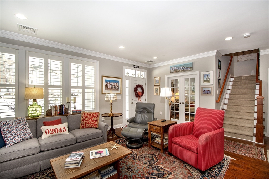 Located at the end of Stayner Drive, this lovely townhouse was built in 2013. The heart of this residence is undoubtedly the expansive open floorplan living area and eat-in kitchen. You have a great den/office on the first floor with a half bath and attacheds two car garage. Complementing the interior is a two-car attached garage, with two parking spaces, providing secure parking and additional storage space. On the second floor, there is a great loft space with two bedrooms. The primary bedroom has a large walk-in closet and on-suite bathroom. This Hingham residence blends space, location, and modern design to create a truly exceptional living experience. Enjoy the heated pool, tennis court, and pickleball, full gym, and you are walking distance to the ferry to Boston.