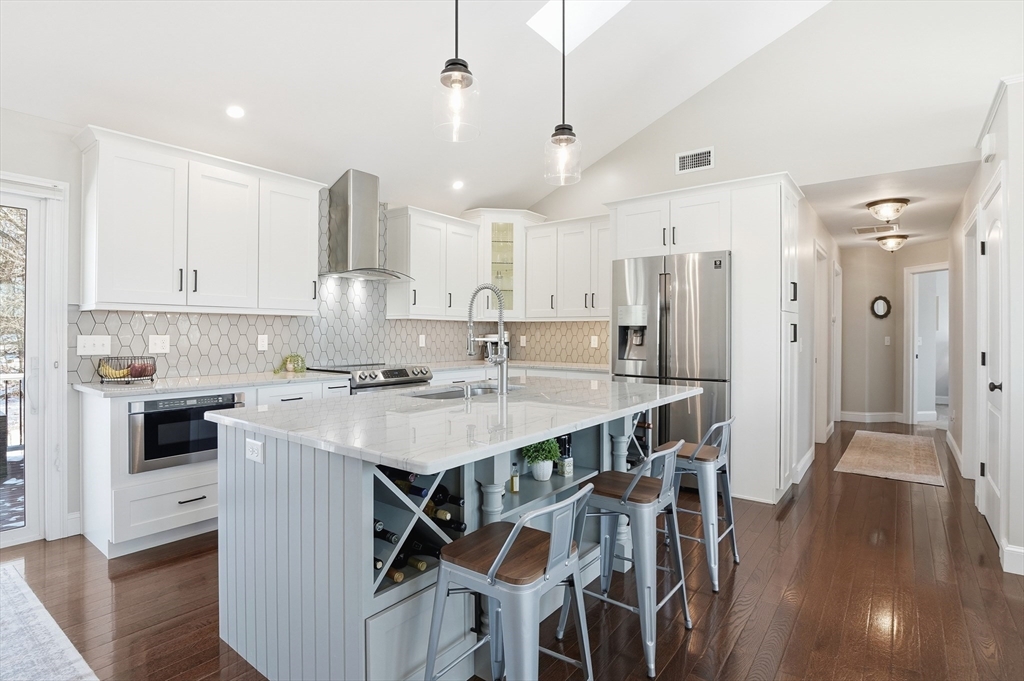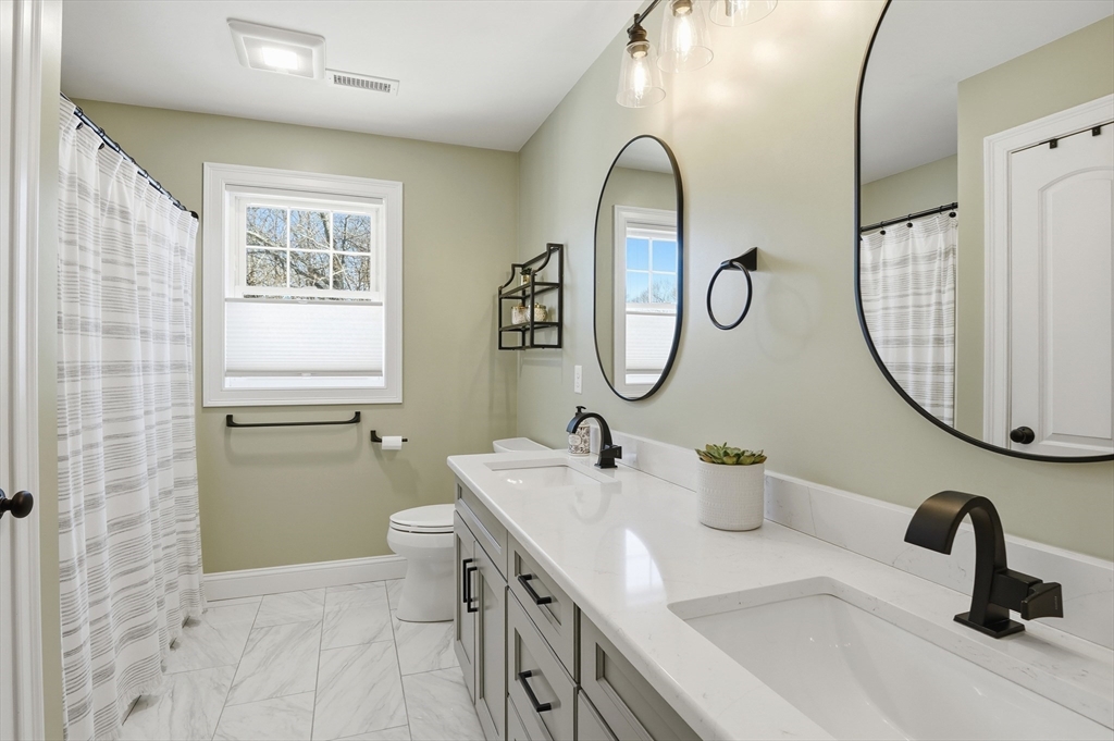 Gorgeous & meticulously maintained young split-level - less than 5 years old! Nested in a convenient Worcester location w/ easy access to local amenities. Enter inside to the sun-drenched main level featuring HW floors throughout & a living room w/ soaring vaulted ceilings, a cozy gas fireplace, & abundant natural light. The open layout flows seamlessly into the kitchen & dining area, perfect for everyday living. The kitchen boasts granite countertops, a large center island w/ breakfast bar, & SS appliances. Down the hall, you’ll find 3 generously sized bedrooms w/ ample closet space & plush wall-to-wall carpeting, along w/ a full bath w/ dual vanities & a tub/shower. The finished lower level provides even more living space - ideal for a family room, home office, or gym, plus a 2nd full bath, laundry area, & direct access to the 2-car garage. Additional highlights include a back deck overlooking the fully fenced in yard & increased energy efficiency w/ updated windows & insulation!