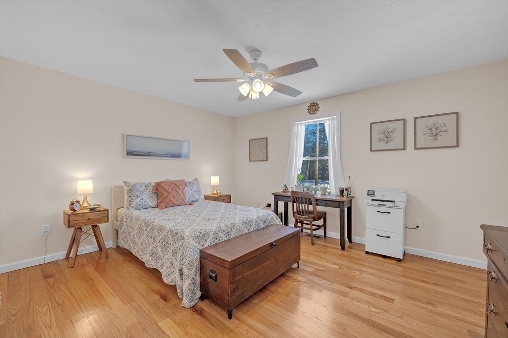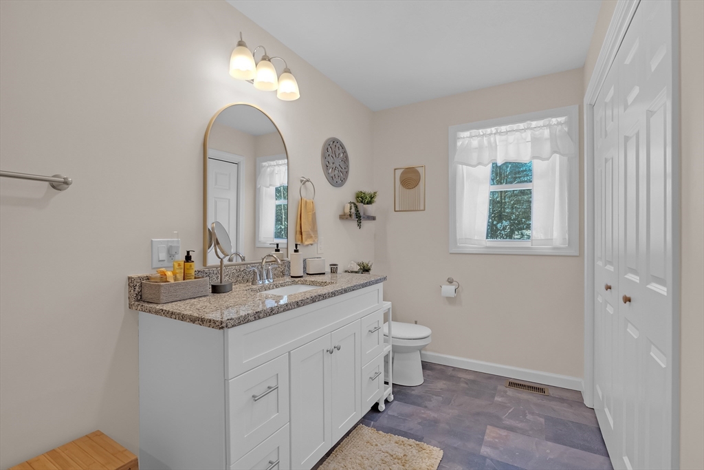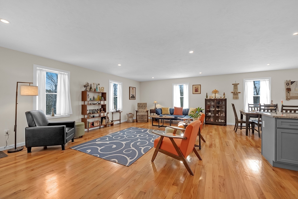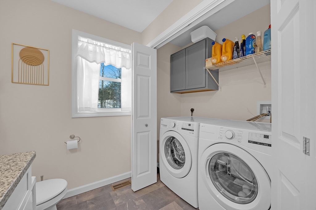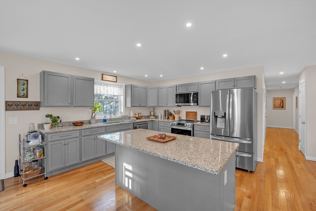 You will fall in love with this newly constructed ranch style home in Belchertown! Open concept living, dining, kitchen area is spacious and bright, perfect for entertaining. Kitchen maintains beautiful cabinetry, granite countertops & new LG appliances all w/five year warranties. Primary bedroom is connected to a full bath with shower and offers a walk-in closet. Second full bath provides tub/shower & laundry facilities. Two additional bedrooms round out the space. Features also include beautiful hardwood floors throughout and all closets have lighting. Lower level rough plumbed for a third bathroom with potential for additional living space. Two ample garage spaces allow direct entry. Back deck and yard are easily accessible from the kitchen entrance/back door. Efficient electric heat pumps for optimal heating/cooling. Close to Belchertown center restaurants and shops and not far from Hadley shopping centers, Amherst and Northampton. A great buy!! See video attached.