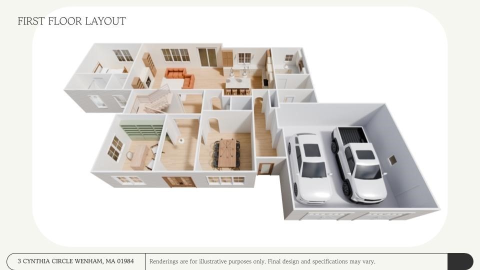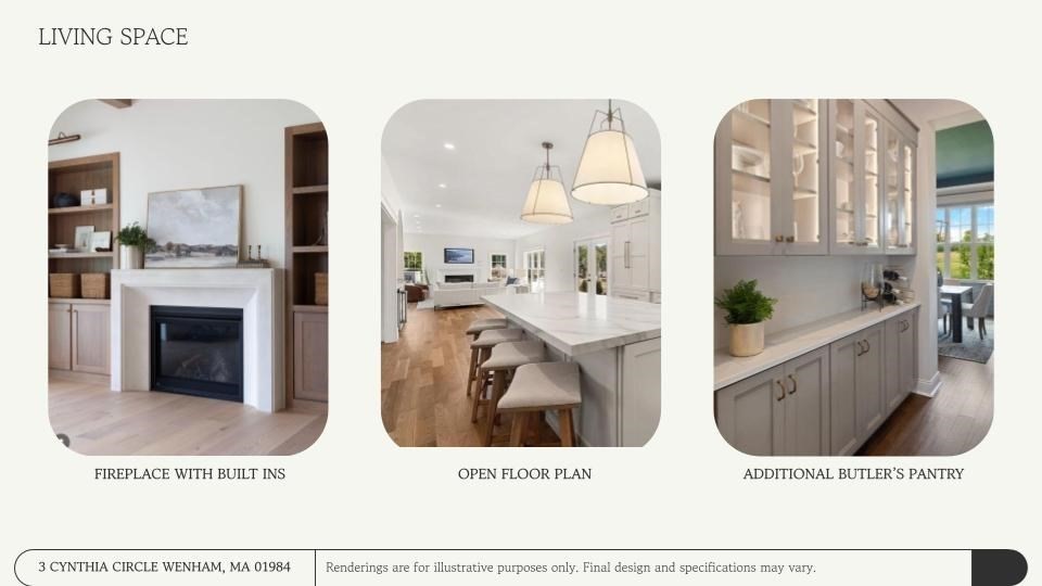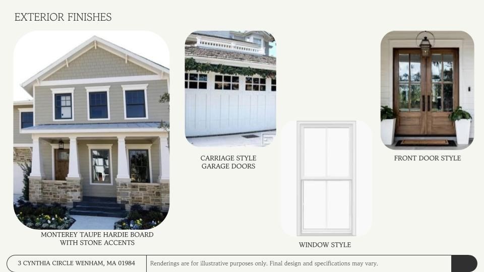 NEW CONSTRUCTION luxury home, available Spring 2026. Set on a private .95-acre lot in desirable Wenham, this custom-built home is part of an exclusive three-lot cul-de-sac abutting conservation land. Designed by a premier local builder, the home offers approximately 4,900 sq ft of finished living space with exceptional craftsmanship and high-end finishes throughout. The open, modern floor plan features a chef’s kitchen with quartz countertops, custom cabinetry, walk-in pantry, premium appliances, and an expansive island flowing into the gas fireplace family room. A flexible first-floor office or guest suite adds versatility. The second level includes a spacious primary suite with spa-like bath and walk-in closet, three additional bedrooms with two full tiled baths, and laundry. Additional highlights include white oak hardwood floors, radiant heat in baths, a walk-up third floor for bonus or media space, unfinished basement potential, full-length front porch, paver patio.