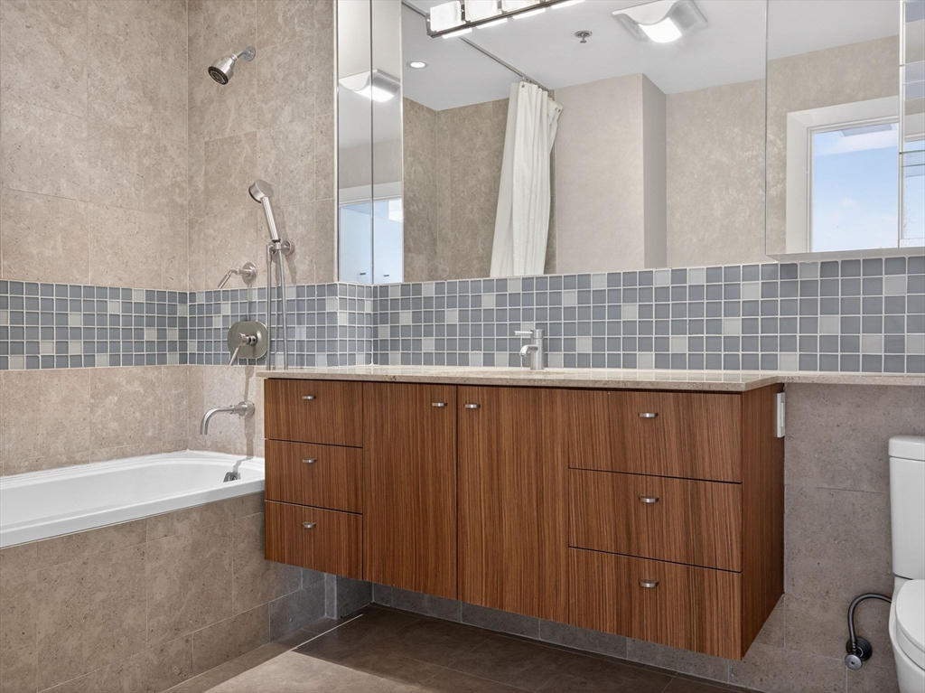This front-facing 3-bedroom, 2-bath residence at Strada 234 offers a rare opportunity to live at the center of Boston with sweeping iconic skyline views. Floor-to-ceiling windows fill the open living and dining area with natural light, creating a striking setting for both everyday living and entertaining. The spacious primary suite features a private en-suite bath, while the second and third bedrooms are generously sized and share a well-appointed full bathroom. Thoughtful details include ample storage throughout and an in-unit washer and dryer, offering both comfort and convenience. Ideally situated in downtown Boston, this home provides effortless access to the city’s premier dining, shopping, and waterfront destinations. Strada 234 is a full-service luxury building with 24/7 concierge, on-site management, and a fitness center—delivering refined urban living with exceptional convenience.