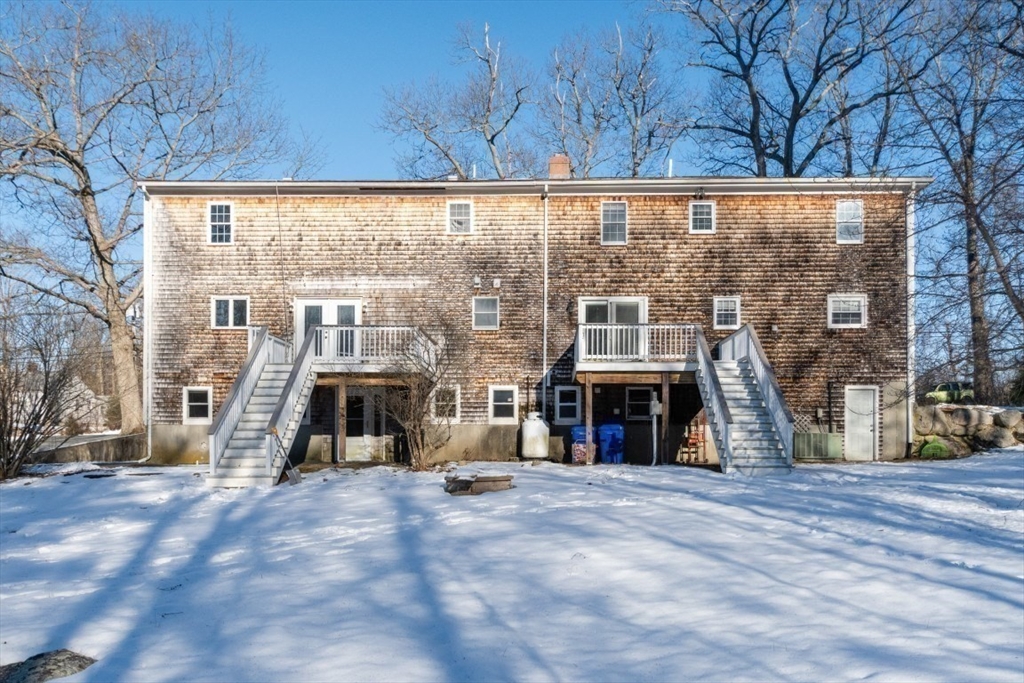 Rare opportunity to own this large East Taunton two family. This duplex offers generous living space across both units with individual back decks overlooking the yard. Unit One features a wood burning fireplace, first floor laundry in half bath, with updated kitchen and dining room on the first level. Upstairs in Unit One the primary bedroom has it's own ensuite office/den/nursery plus two more ample sized bedrooms and a full bath. Unit Two features a large living room, kitchen and dining room, first floor laundry and bathroom plus an office/den. Upstairs, Unit two has two bedrooms and one bathroom. The primary bedroom boasts a walk-in closet. The hallway upstairs is large enough for a play area, music area, or sitting area. The basement has partially finished space with separate entrance. The unfinished part of the basement can be accessed through Unit One or from separate entrance.