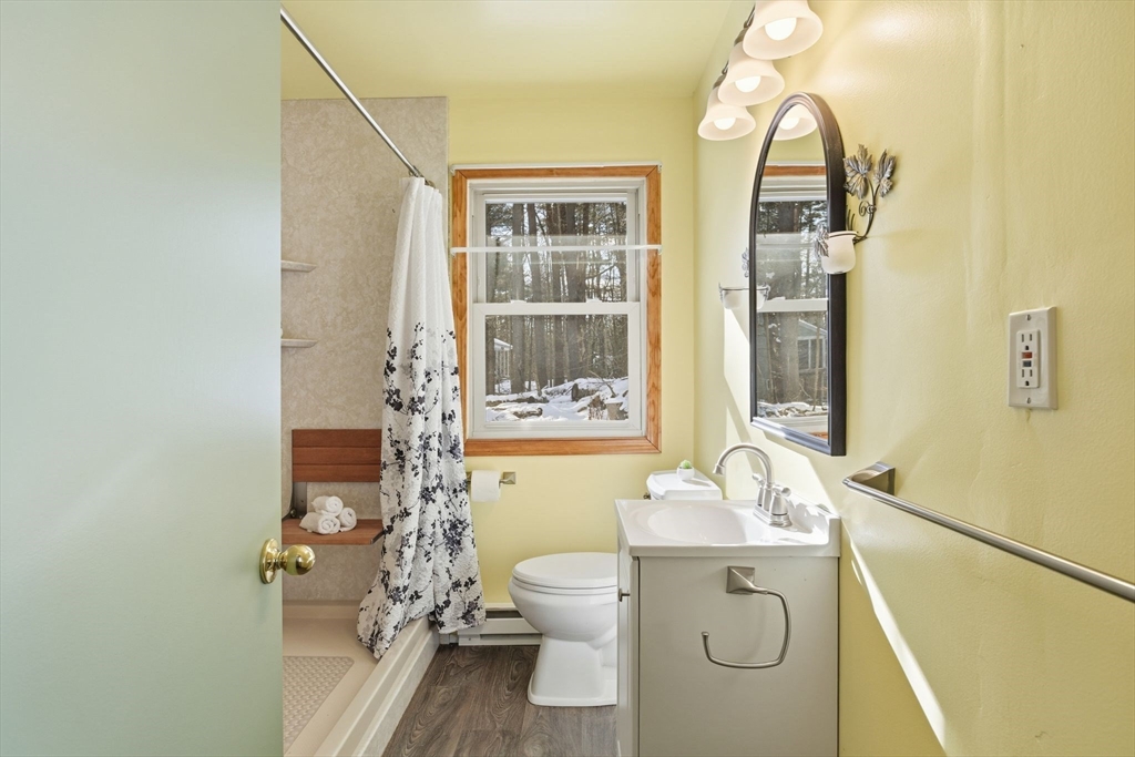 Set within a private lake community with lake access, this contemporary Cape sits on a rare triple lot at the foothills of the Berkshires, offering an ideal balance of lakeside living and everyday convenience. Whether used as a full-time residence or weekend retreat, the bright open-concept layout is filled with natural light and opens to peaceful meadow views from the back deck. Enjoy private access to five sandy beaches and Wildwood community amenities within this sought-after lake community. The second floor features two comfortable bedrooms, while a flexible first-floor room works well as a home office or third bedroom. A cozy gas stove adds warmth for year-round living. Minutes to local hiking trails with easy access to regional skiing, the home is also 45 minutes to Bradley Airport and within 2.5 hours of NYC and Boston, making this an exceptional opportunity for a year-round or second home at the gateway to the Berkshires. HOA FEE IS YEARLY.