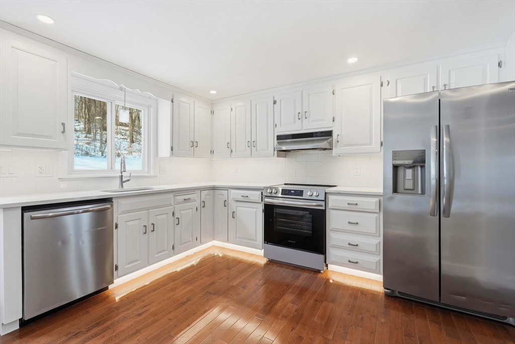 Set on a quiet street in the heart of Topsfield, 17 1/2 Averill Street offers comfortable living on nearly an acre of land. The main level features an open-concept layout ideal for everyday living and entertaining, along with a primary bedroom complete with its own private bath. Two additional bedrooms and 2.5 baths provide flexible space for guests or a home office. Tasteful cosmetic updates enhance the kitchen and baths, while the lower level offers a spacious laundry room and a versatile bonus area anchored by a beautiful stone fireplace - perfect for a media space, playroom, or cozy retreat. A 2-car garage and a brand new 3-bedroom septic system add peace of mind. Just minutes from town, schools, parks, and local amenities, this home delivers the best of Topsfield living.