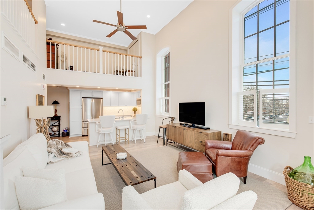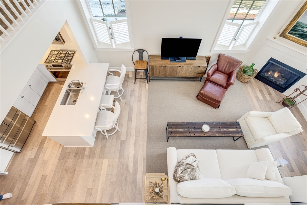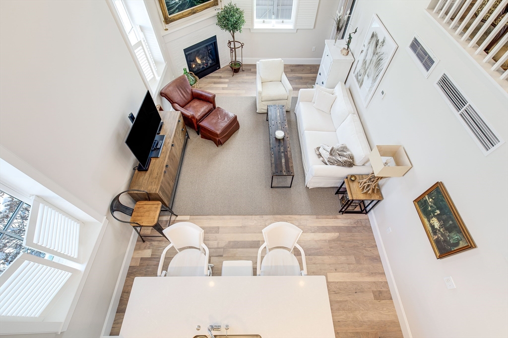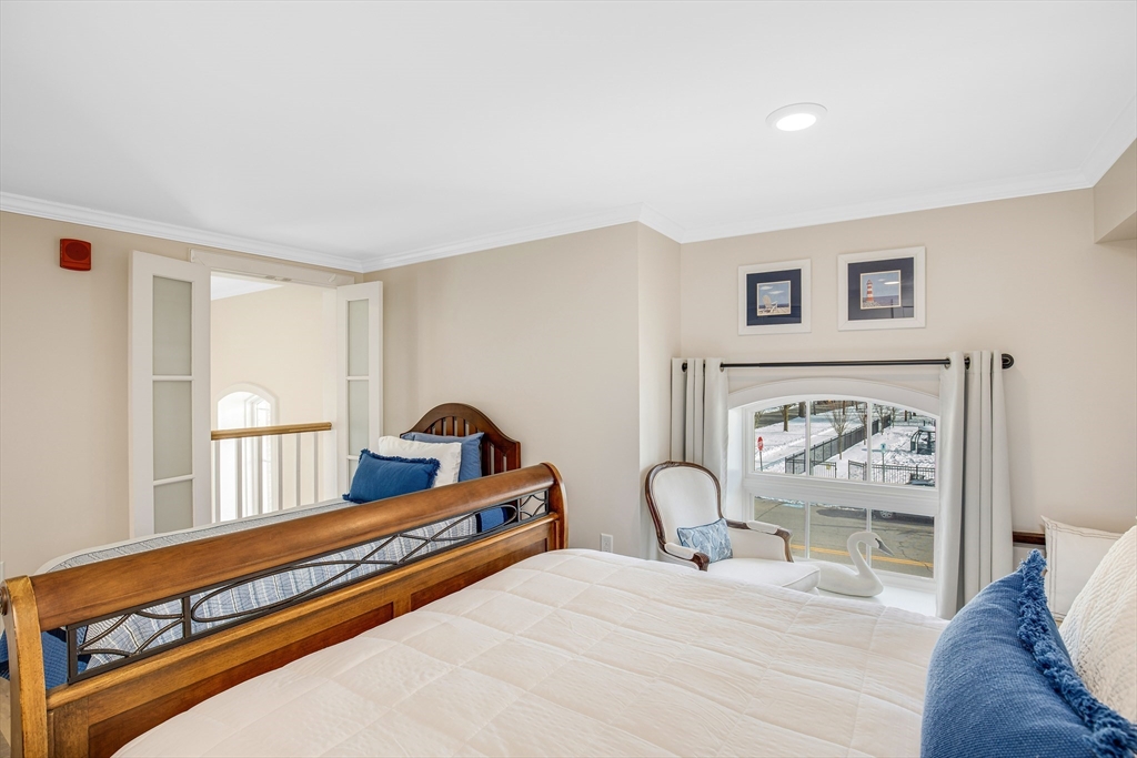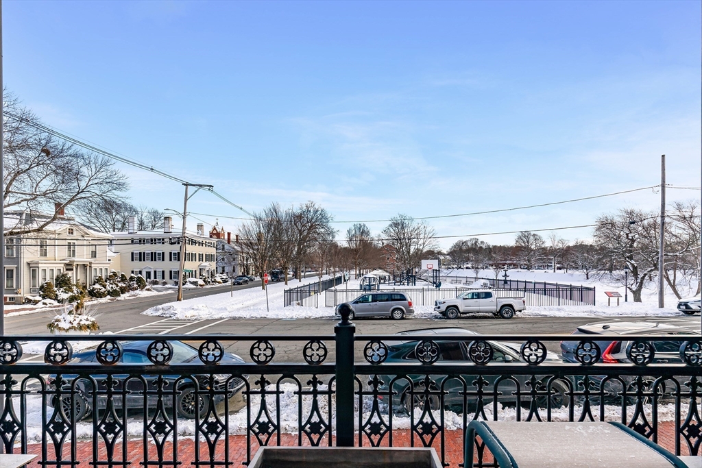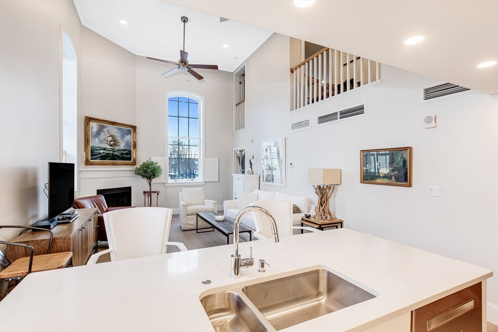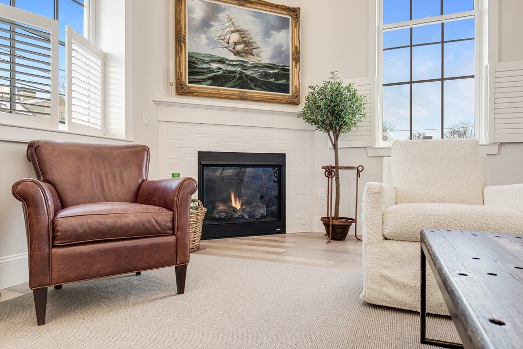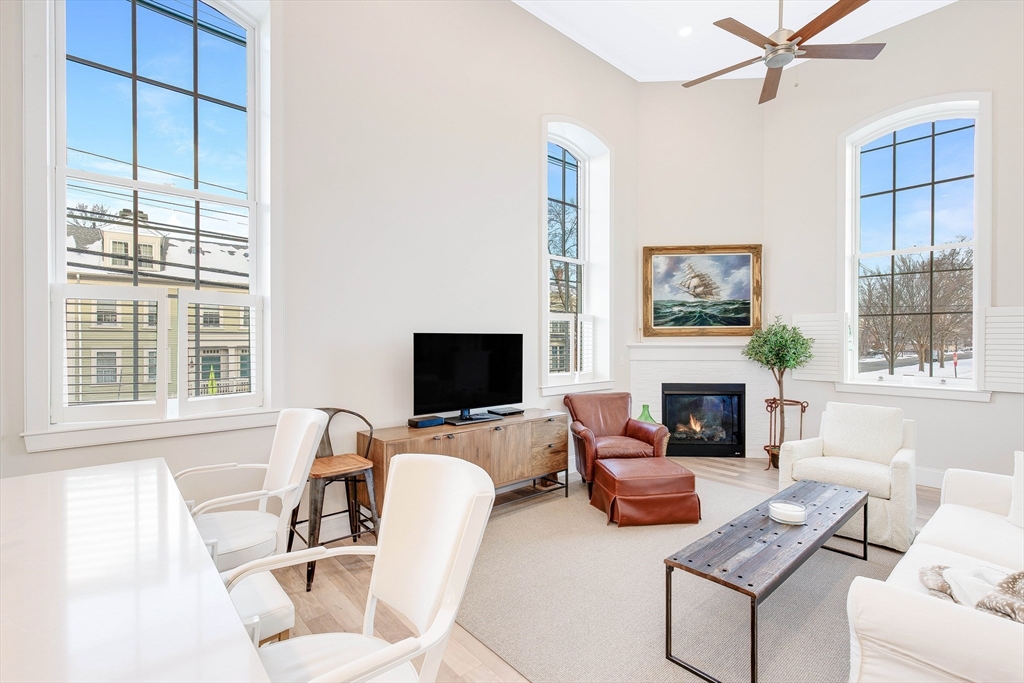This luxurious in town condo is a first floor corner unit overlooking the Bartlett Mall and a few blocks from downtown Newburyport. This like new 1 owner home offers 2 bedroom, 2.5 baths, 1878 sqft with 1st floor primary suite, gorgeous spa like bath, walk in closet, laundry and private balcony a 1/2 bath and lots of storage. Custom kitchen with quartz counter tops, Bosch Appliances open to living room with 15 ft ceilings, gas fireplace and large windows! The 2nd floor is the guest bedroom, full bath an office area and sitting areas overlooking the 1st floor. A heated garage parking space under with elevator access and bonus 2 deeded parking spots off street! Come live the Newburyport Lifestyle! Contact me for more info