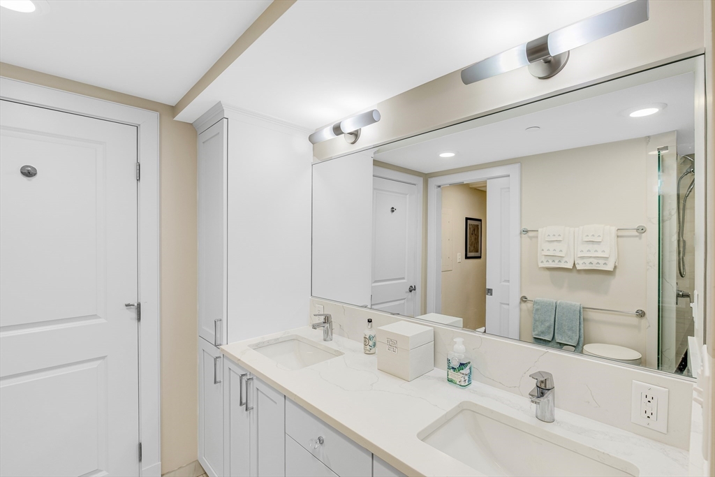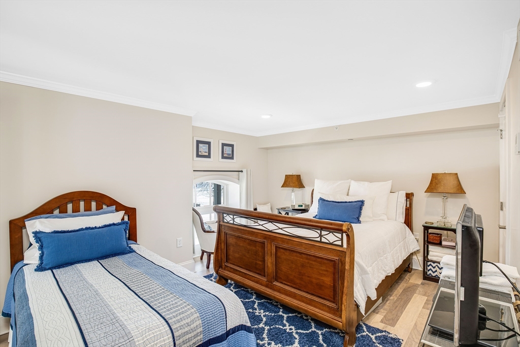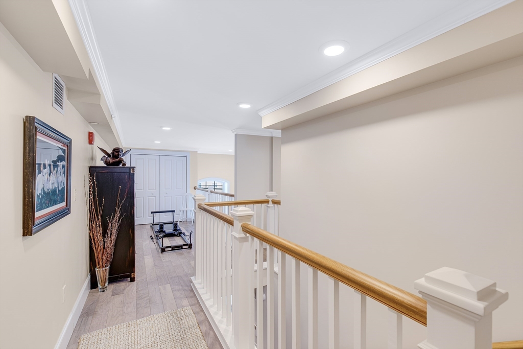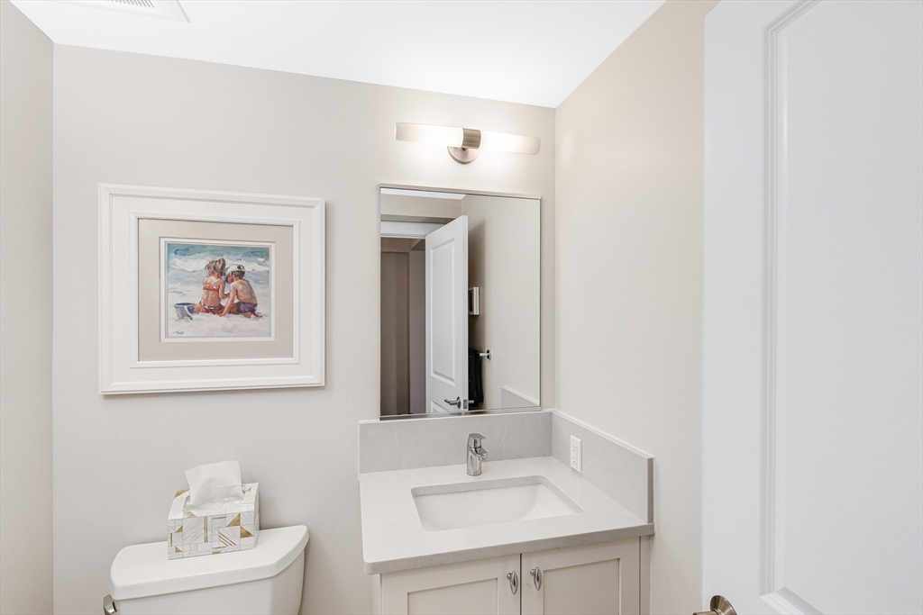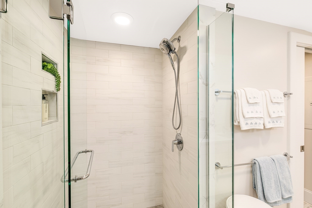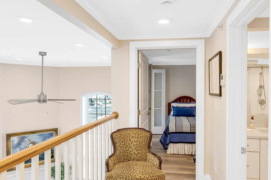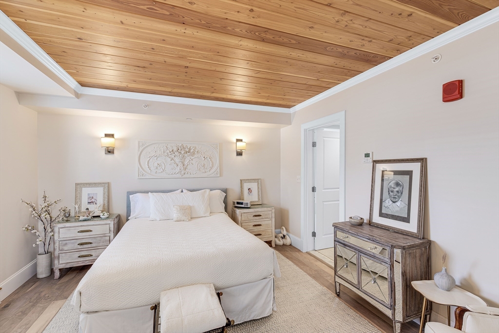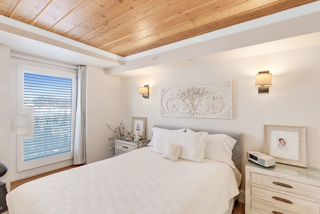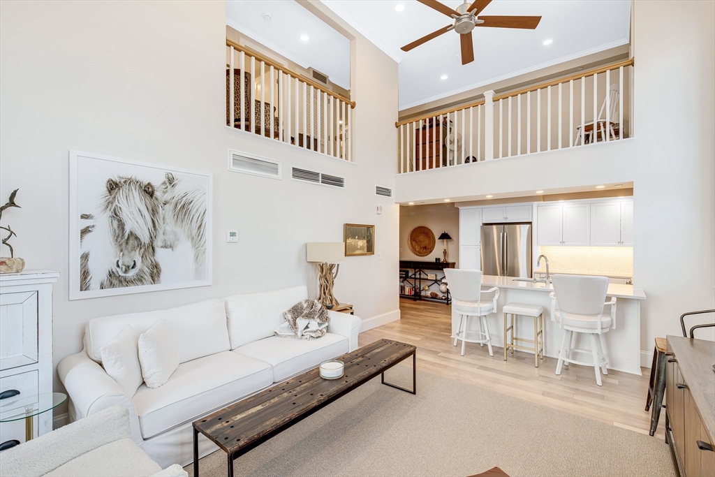 This luxurious in town condo is a first floor corner unit overlooking the Bartlett Mall and a few blocks from downtown Newburyport. This like new 1 owner home offers 2 bedroom, 2.5 baths, 1878 sqft with 1st floor primary suite, gorgeous spa like bath, walk in closet, laundry and private balcony a 1/2 bath and lots of storage. Custom kitchen with quartz counter tops, Bosch Appliances open to living room with 15 ft ceilings, gas fireplace and large windows! The 2nd floor is the guest bedroom, full bath an office area and sitting areas overlooking the 1st floor. A heated garage parking space under with elevator access and bonus 2 deeded parking spots off street! Come live the Newburyport Lifestyle! Contact me for more info