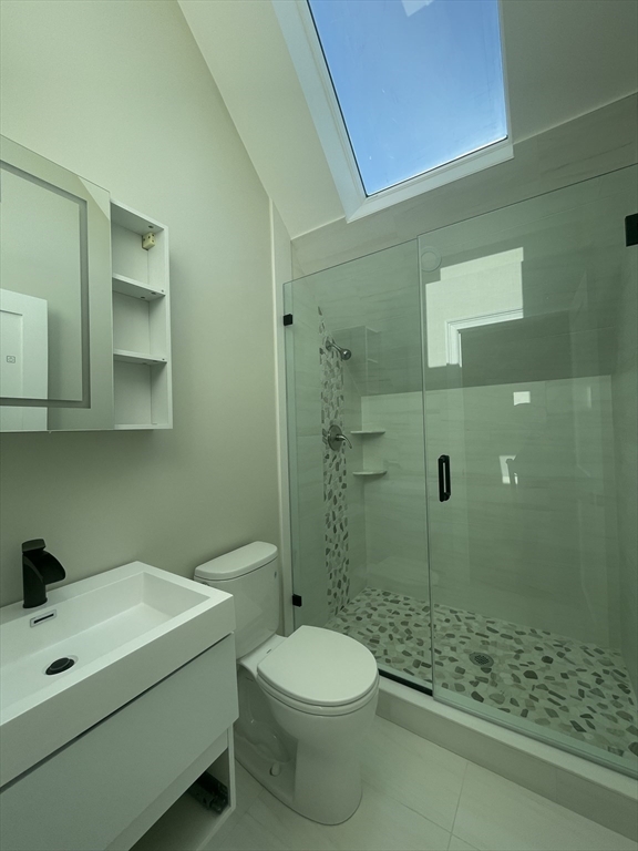 New renovation! Duplex condo quality 3 bed 2.5 bath. Gorgeous kitchen with a 9 ft Quartz island. Top of the line gas stove with 6 burners. Washer/dryer in unit! Huge balcony off the kitchen. Great living room for entertaining. Master bedroom/bathroom on the first level. Two bedrooms and bathroom (with impressive skylight) on the second level.Other features include Central AC, ample driveway parking and shared yard space.Fantastic location moments from Target, Wegmans, Encore Casino and Downtown Boston.