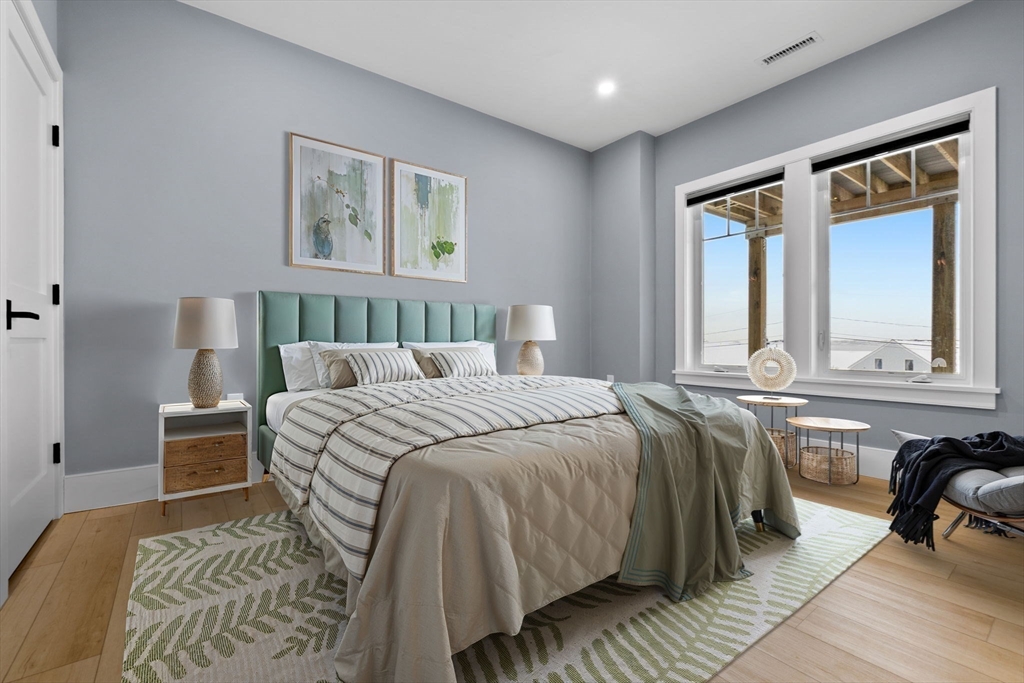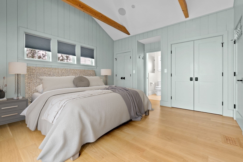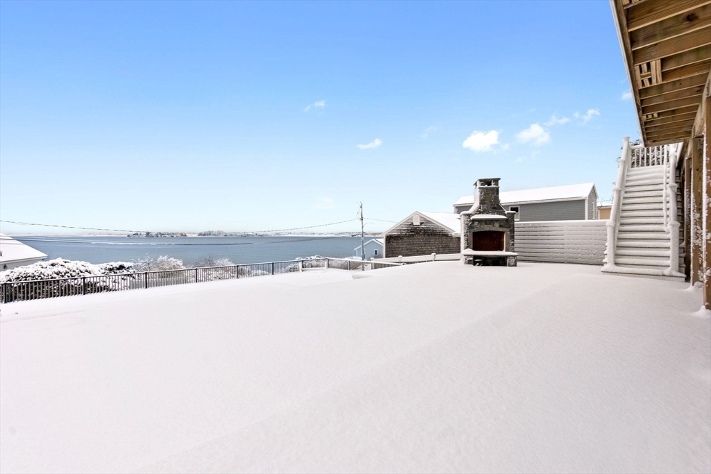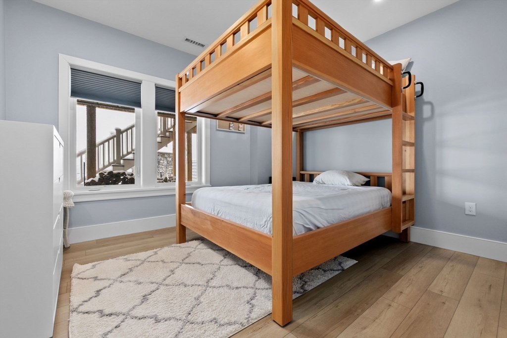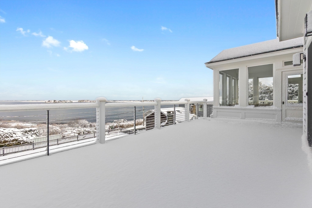 Make your next home your vacation home on Great Neck! This beautiful custom-built “Builder’s Home” sits atop a hill with unobstructed, year-round views of Ipswich Bay, Plum Island, and Cape Ann. Designed with two levels of open-concept living, the layout is ideal for both year-round living and summer retreats, offering flexibility for separate living spaces. The main level features beamed cathedral ceilings, a gas fireplace, engineered hardwood floors, and opens to a spacious deck overlooking the bay. The first-floor primary suite includes a modern full bath and access to the sunroom. The full walk-out lower level offers two additional bedrooms, a kitchenette, and opens to a large patio with stone fireplace and fenced turf sports yard. Located directly across from private Clark Beach, this home is perfect for year-round entertaining and coastal living.