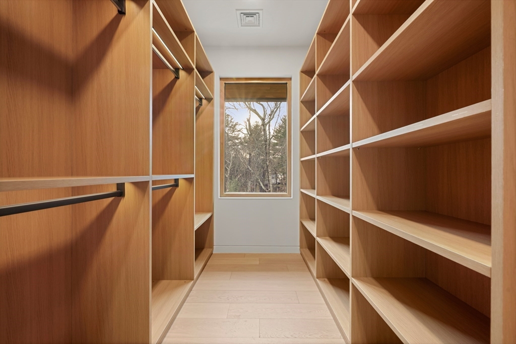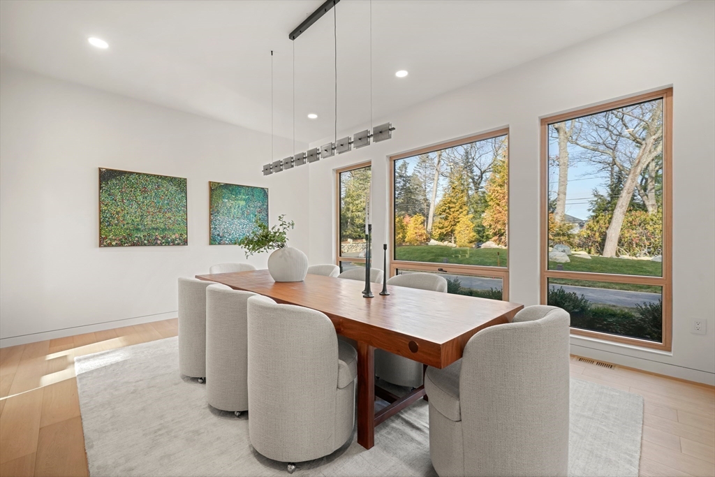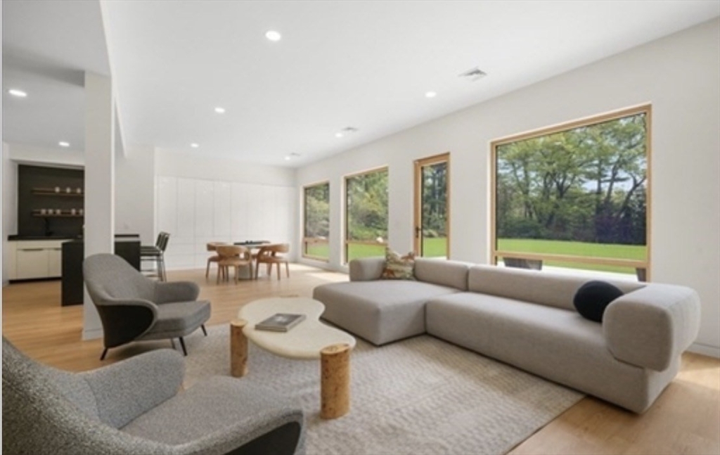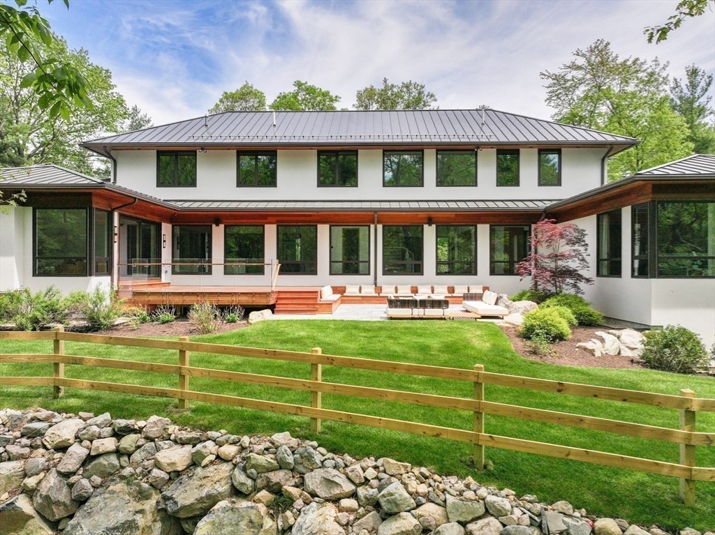 This Contemporary designed by a prominent architect and located in the Country Club neighborhood is inspired by the Japandi style which combines the serenity of Japanese architecture with the organic nature of Scandinavian design. A father/son collaboration, this home’s sophisticated details abound from the illuminated floating staircase to a semi-enclosed courtyard with a deck and sunken patio. The expansive backyard protected by conservation forest, is permitted for a pool and overlooks 2+ acres with Southwest exposure. Distinction prevails from the expansive kitchen islands with lighted cabinetry to the first floor primary suite with a private study.The lower level has a showcase wine cellar and a spacious exercise room with space for a golf simulator. Potential for a 6 car garage parking, this masterpiece is uniquely one, minutes from schools, Boston, and Logan International Airport.