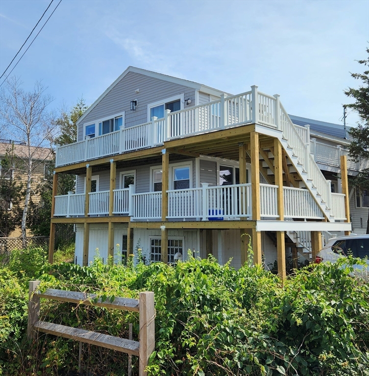 Your BEAUTIFUL Dream Beach House Awaits! This spectacular turnkey home on Plum Island offers the ultimate in coastal living with breathtaking views of the ocean and the basin - just across the street from the beach. Tastefully renovated and taken down to the studs w/new electric, plumbing, heating, A/C, floors, walls, lighting, quartz countertop/kitchens, baths & appliances. The 2nd floor 3BR main living space has vaulted ceilings, skylights & expansive open concept kitchen, living, dining space with tremendous ocean views. The 1st floor can be used as a separate 2BR rental unit. This home has beautifully designed gourmet kitchens, and expansive decks-perfect for soaking in both sunrises & sunsets. This property includes significant summer PARKING LOT INCOME POTENTIAL! Whether you're looking for a full-time residence with 5 bedrooms, a vacation escape or an investment opportunity, this home delivers it all ~ views, wildlife, water access & the magic of island life! Easy to show!!