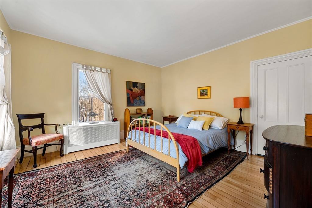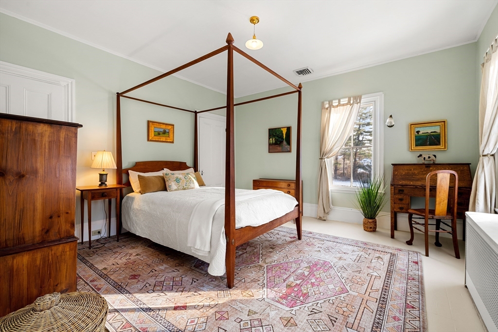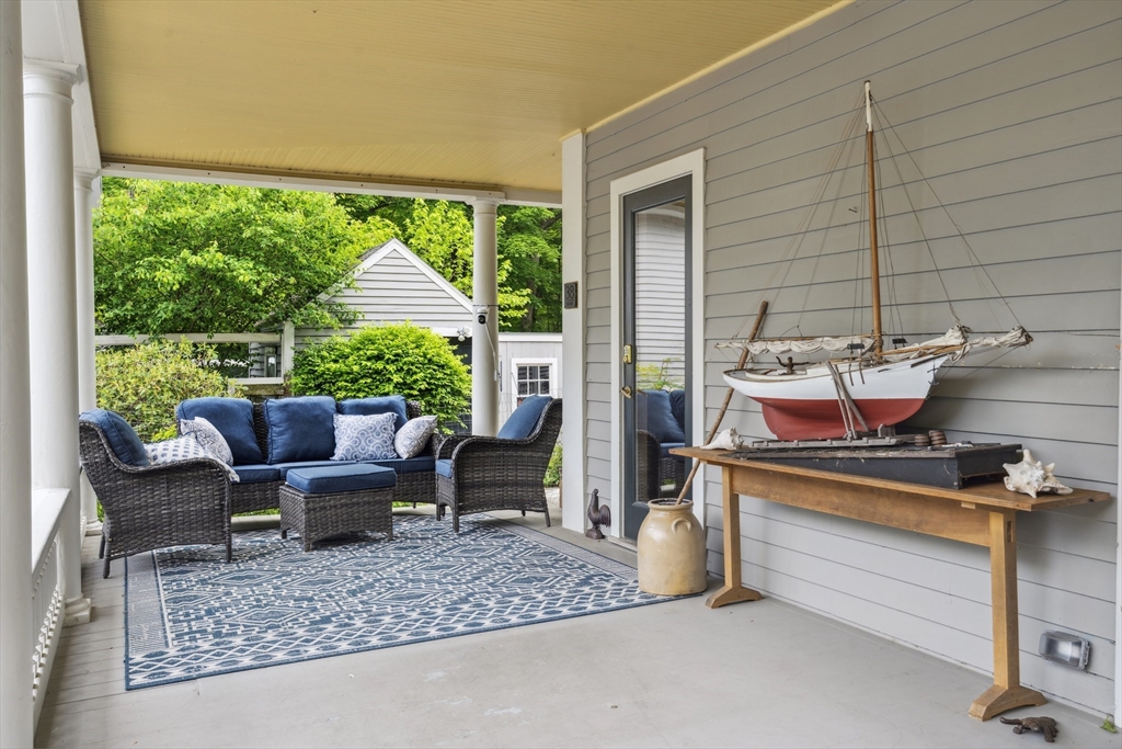 Experience the timeless elegance of Berry Farm, a distinguished 19th-century estate located at 38 Main Street in the heart of Newbury. This 3,649 sq. ft. colonial masterpiece, crowned with a graceful mansard roof and wrapped in classic covered porches, stands as a rare blend of historic grandeur and curated beauty. Set on 1.4 acres of meticulously manicured, century-old grounds, the property welcomes you with botanical splendor-mature trees, vibrant heirloom plantings, and a tranquil live Koi pond that evokes a private sanctuary. A separately fenced inground lap-pool and expansive flat green lawn offers resort-like living, perfect for entertaining, recreation, and pets within a fully fenced landscaped. The grand front entry reveals a dramatic mahogany staircase rising to five oversized bedrooms and three-and-a-half baths. Sunlight pours across newly finished hardwood floors, highlighting exquisite 12-inch baseboards and intricate period moldings.