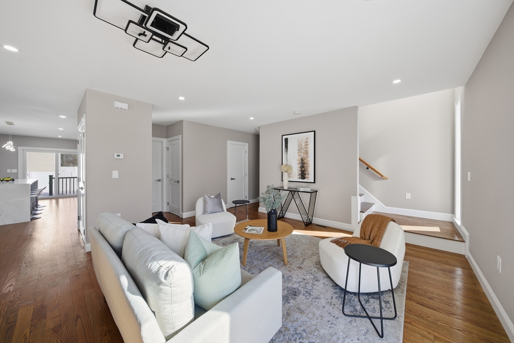 Welcome to this contemporary new construction 4bed 4.5 bath single-fam home in Waltham, thoughtfully designed for modern living. This beautifully crafted residence offers an open, light-filled layout with high-end finishes throughout, large Harvey windows and walnut natural hardwood. The main living area flows seamlessly, ideal for both everyday living and entertaining. A modern kitchen anchors the space, complemented by a quality two tone cabinetry, stone countertops, and premium appliances. Spacious bedrooms, spa-inspired bathrooms, walk-in closets and ample storage provide comfort and functionality. A bonus family room in the basement that suits any purpose! Enjoy the convenience of new systems, energy-efficient construction, and a private outdoor area designed for relaxing or hosting. Located near major routes, public transportation, shopping, dining, and all that Waltham has to offer. A rare opportunity to own brand-new construction in a desirable neighborhood