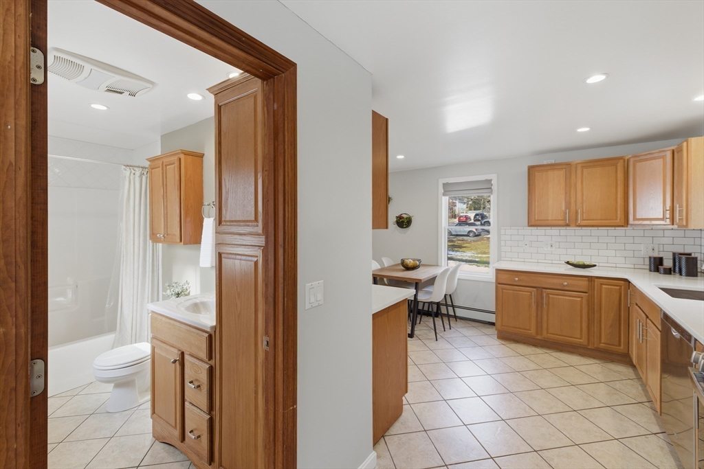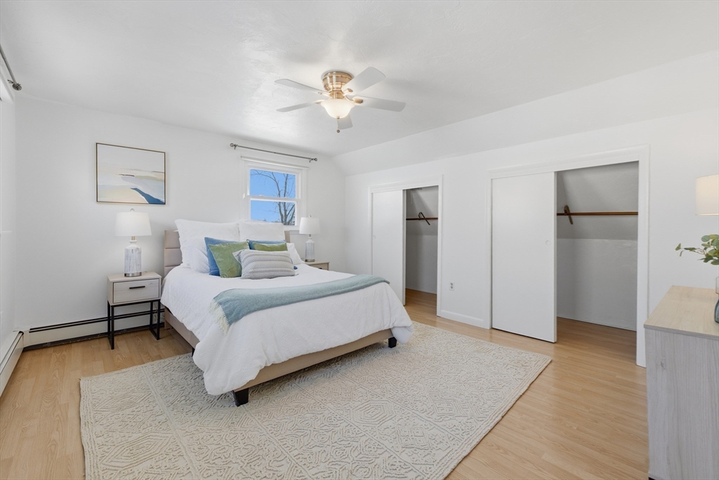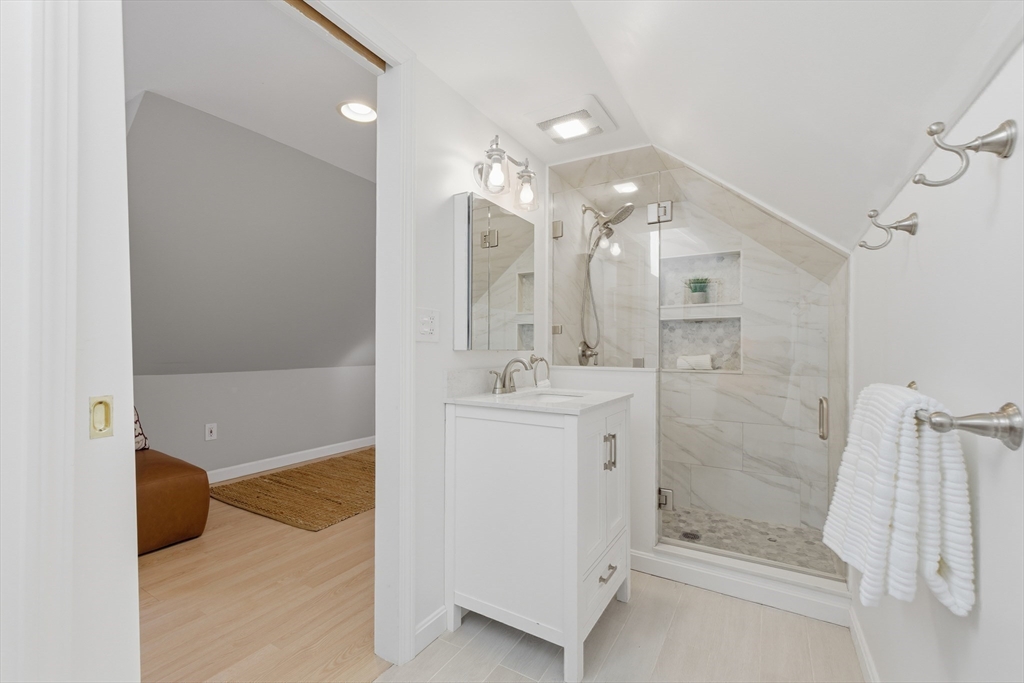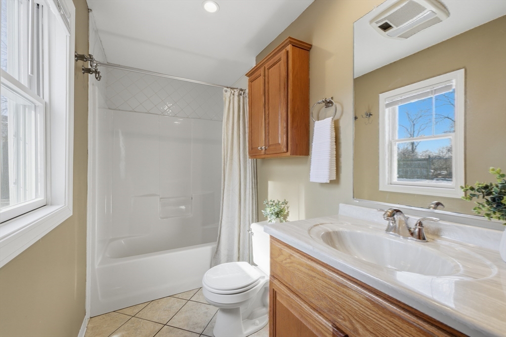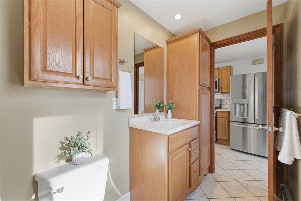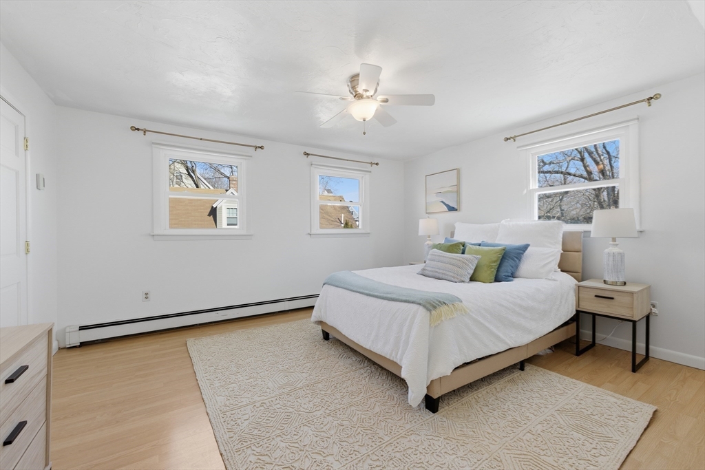 Charming, sun-filled home with private, fenced-in backyard on a closed-end street. This move-in ready home welcomes you with a cozy front porch. Enter the home to find a comfortable living room leading to a warm & inviting updated kitchen with ample oak cabinetry, newer SS appliances & convenient mudroom with extra storage & separate entry. The heart of the first floor is the spacious, welcoming family room with abundant natural light. Sliding glass doors offer direct access to an oversized, composite deck overlooking the peaceful, fully fenced-in landscaped backyard with stone patio. Perfect for entertaining! The 2nd floor offers two large bedrooms with impressive closet space, modernized bath & additional office space. Spotless basement features a bonus room & laundry. Gas heat, newer roof, newer water tank, new W&D. Less than a mile to commuter rail & walking distance to downtown Norwood. This one is a must see! A perfect blend of privacy & convenience to all Norwood has to offer!