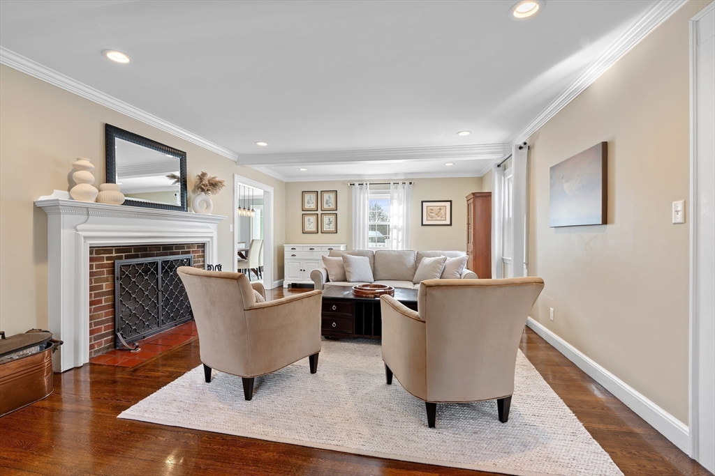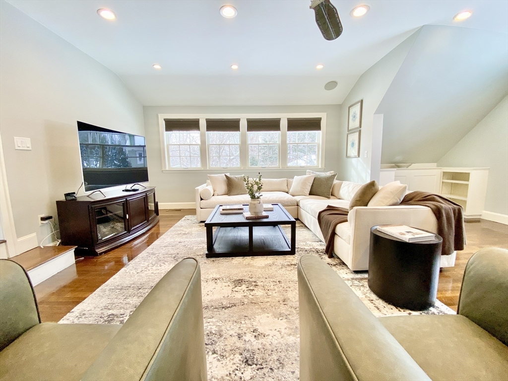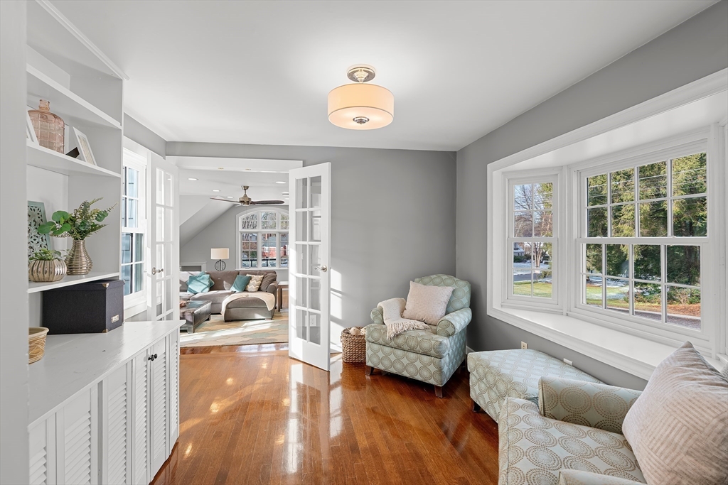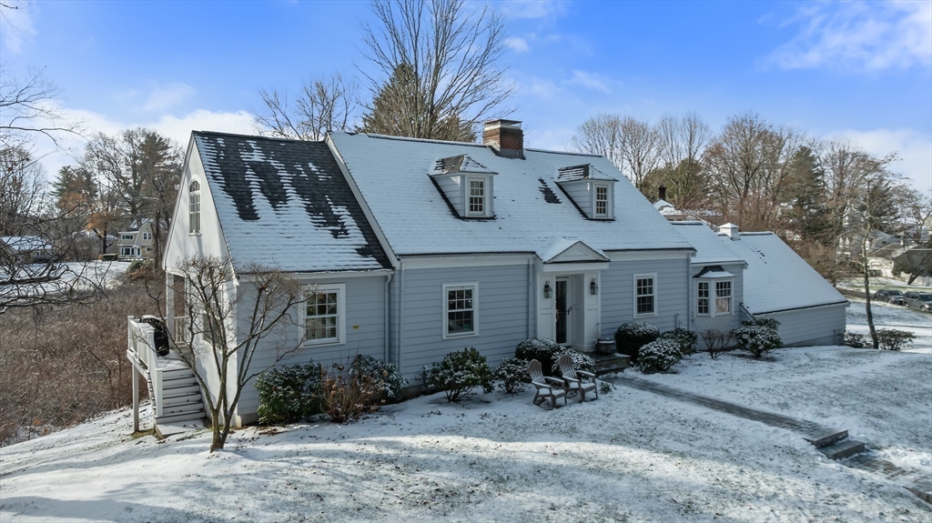 Centrally located in a charming, sought-after neighborhood, this expanded Cape offer 4 BR and 3.5BA along with captivating year-round views off the back of property. Thoughtfully designed, updated and maintained, the home features a dramatic light filled kitchen where oversized picture window create a stunning backdrop. Generous living spaces, a flexible floor plan and warm architectural details make this home welcoming and functional. Upstairs are three bedrooms, one being the primary suite. Laundry and sitting room conveniently on this floor. The walk out lower level features newly renovated space with a kitchenette, TV room, bedroom and spectacular bath. Convenient location in the center of town near shops, commuter routes. This property is the perfect blend of charm, comfort and natural beauty.