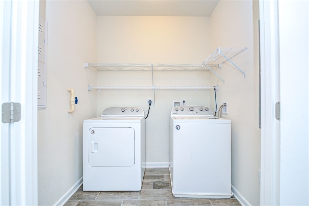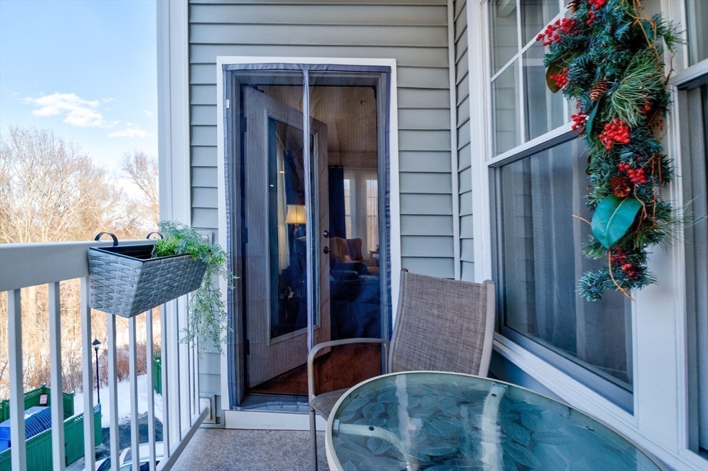 Welcome to Riverside Woods, a desirable 62+ community offering comfortable one-level living. This bright corner-unit condo features 5 rooms, 2 bedrooms, and 2 baths with an open-concept layout. The kitchen offers granite countertops, stainless steel appliances, and a center island that opens to the sun-filled living room with walls of windows and access to a private balcony overlooking a peaceful wooded setting. A formal dining area is seamlessly integrated into the main living space. The primary suite features generous closet space and a private en-suite bath, while the guest bedroom includes a double closet and easy access to the second bath. Additional highlights include in-unit laundry, central A/C, and two tandem garage parking spaces located under the building with elevator access. Residents enjoy a clubhouse with fitness center and convenient access to shopping, dining, and major highways. A wonderful opportunity not to be missed.