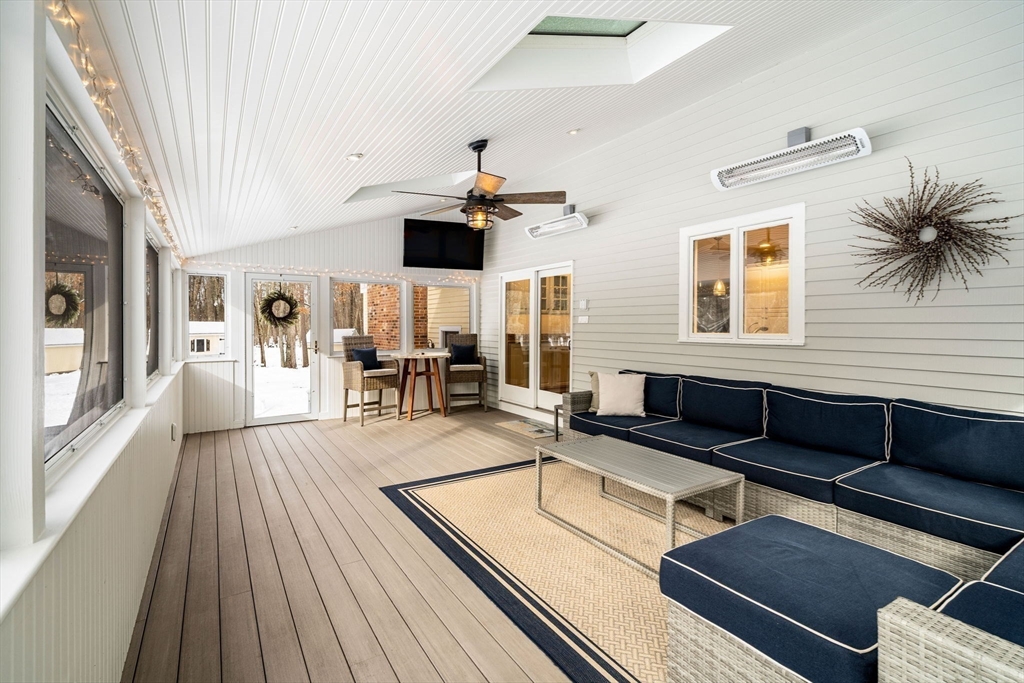 Immaculately maintained center entrance 4BR/3BA 3985 sq ft colonial on a private 6+ acres in desirable Boxford. Abutting over 200 Acres of conservation land, this very private professionally landscaped and maintained home is located at the quiet end of a winding drive. Located in the coveted Masconomet school district and offering multiple living spaces indoors and out, you’ll find space for all your family, pets, activities and toys! From the oversized heated 4-season sunroom, you overlook the huge paver-patio, backyard, hot tub and conservation lands. Enjoy warmth from the brick fireplace in the large family room. Have the kids and friends play in the finished basement or watch movies in the comfy theater seating. Home office, 2-outdoor storage sheds (Larger has power), whole-house automatic generator, ample parking plus extra finished basement area for exercise, hobby or play area. Nicely appointed and absolutely move-in ready, this lovely home awaits a new family to call it home!