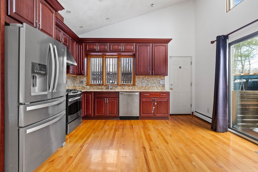 Well-maintained updated two-level single-family rental offering a bright, open feel and a flexible layout. The home features 4 bedrooms and two full baths, with generous living space across both levels.The main level includes spacious living and dining areas filled with natural light from large windows. An open kitchen offers space for a dining table and a functional, livable layout that opens to a fireplace family room, creating an inviting and connected main living space.The lower level includes a family room, laundry area, direct access to the garage, and two additional flexible bed rooms ideal for a home office, guest space, gym, or playroom. Washer and dryer are included, along with ample storage.Outside, the property features a private fenced front yard with a porch swing patio and room for a fire pit, creating a comfortable outdoor space for relaxing and entertaining.Conveniently located near shopping, major highways, and commuter routes, with easy access to Boston & Logan.