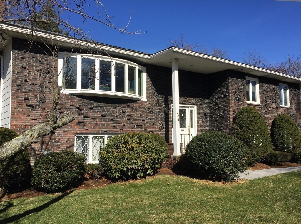 Gorgeous Brick Front Split Entry, Nestled, Secluded and gazing down upon a fantastic Colonial Park School Neighborhood…Welcome to 33 Lake Avenue, Stoneham. This Oversized, 2,800+ square foot (according to Town Records) Split Entry Home has all the extras. Central Air, Sprinkler System, Primary Bedroom with Bath connected Primary Bedroom Sunroom, Garage, Inground Pool (See Disclosures). Large Living Room and Dining Rooms, 4 bedrooms, 2.5 baths and a Fantastic In-law scenario with private entry, bedroom, bathroom and kitchen. Finished Lower-Level Family Room w/Fireplace. Island kitchen with beautiful skylight. In the highly sought after Colonial Park School area, Stoneham offers young schools including a New High School, Wonderful downtown with a theatre and restaurants. Very close to the Orange Line, Commuter Rail and just minutes from I93, I95, Rt 128 and Rt 1.