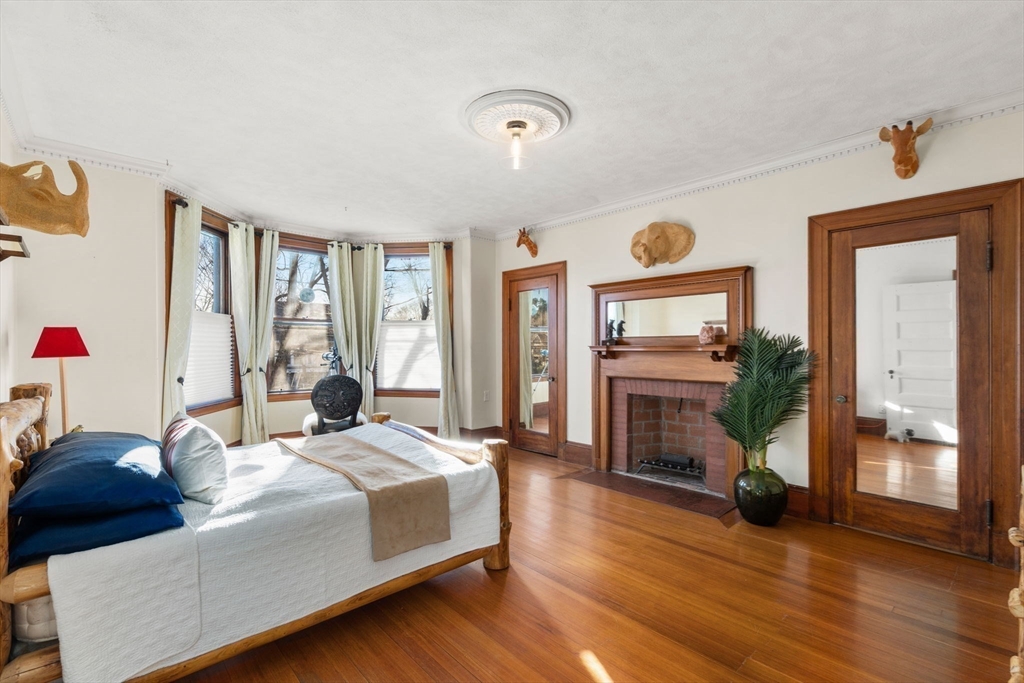This renovated landmark painted lady with its notable mansard roof and its distinctive landscaping, stands proudly, blending timeless charm with everyday convenience. The grand front entry opens to a light-filled main level with 10-foot ceilings, beautiful period details, open floor plan, abundant natural light and large first floor guest suite. Spaces for entertaining and relaxing include a living room with ornate fireplace, sitting room with verandah access, dining room, wood-paneled office, bistro-style kitchen, family room, and guest suite. The second floor features a luxurious fire-placed primary suite, four additional bedrooms, and laundry. Separate entrance 3-room suite offers potential for in-home office. A granite patio and expansive, level backyard complete this exceptional property. An opportunity to live in one of Newton's notable houses and be within a few blocks of Newton Centre, Mason Rice, Crystal Lake and the T.