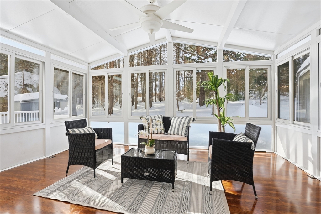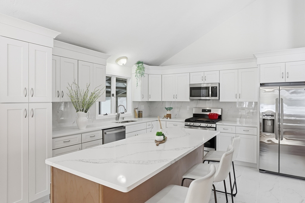 Located in a highly desirable neighborhood, this rarely expanded 6BR, 3.5BA home offers outstanding flexibility—perfect for a home office, gym, studio, or guest suite. Numerous IMPROVEMENTS include renovated kitchen and bathrooms (2026), new family room vinyl flooring (2026), fresh interior paint (2026), Buderus boiler and hot water tank (2018), and 6 Mitsubishi mini-splits (2013). The stunning remodeled chef’s kitchen impresses with quartz countertops, center island, and stylish backsplash. The sun-filled living room features a bay window, soaring cathedral ceiling, and a double-sided brick fireplace with built-in BBQ smoker. Enjoy year-round living in the sunroom and solarium/play area with its own entrance. The primary suite offers an upgraded full bath, while the lower-level family room shines with new vinyl flooring and a renovated half bath/laundry area. Walk to Davis Elementary, minutes to Middle/High School and Town Center for shops and restaurants. Easy commute to Boston.