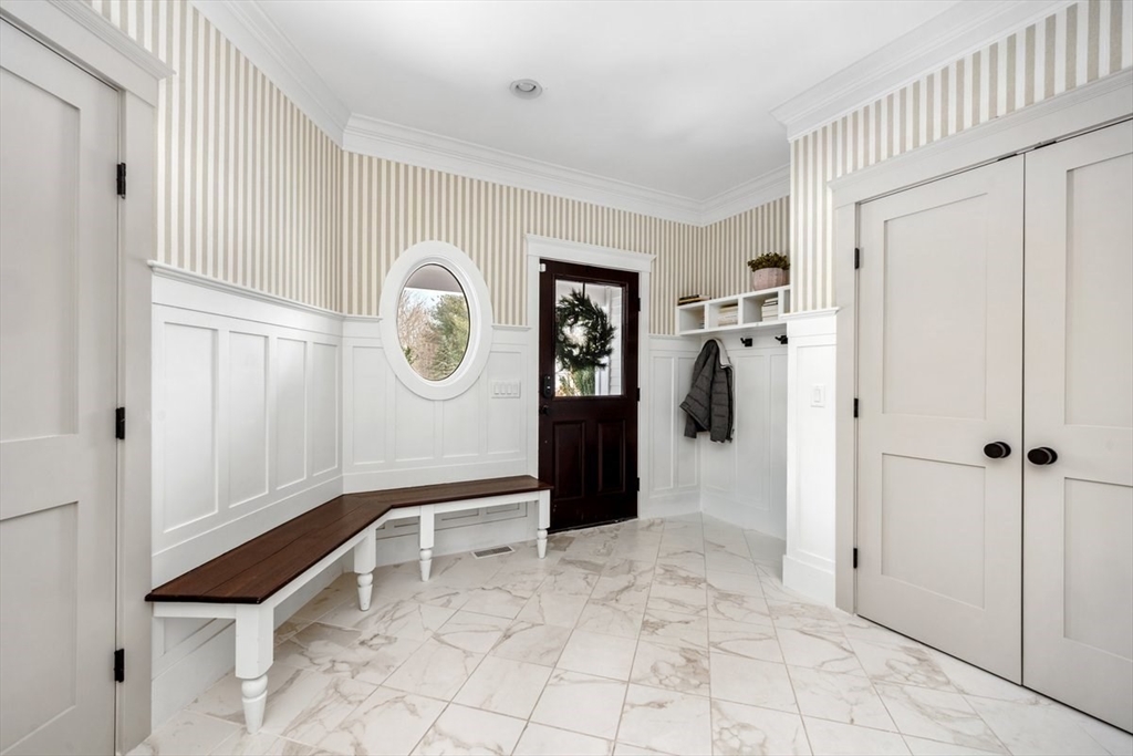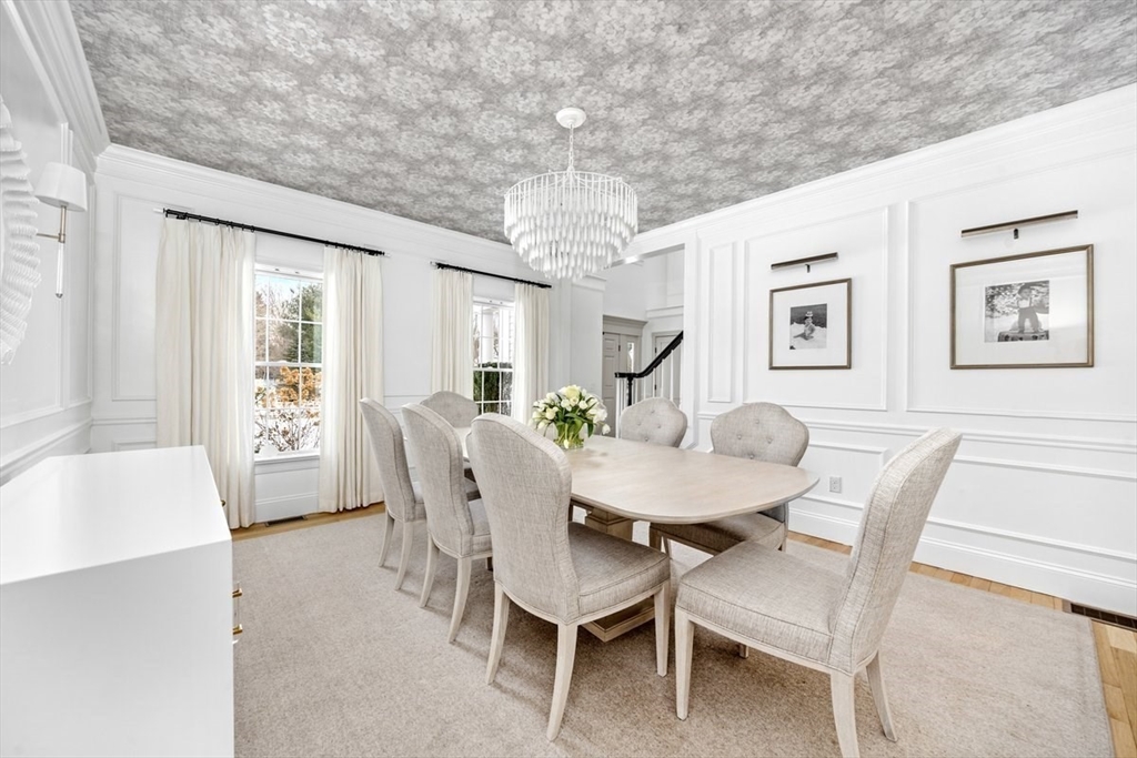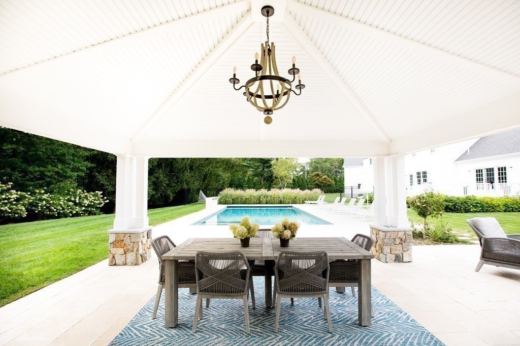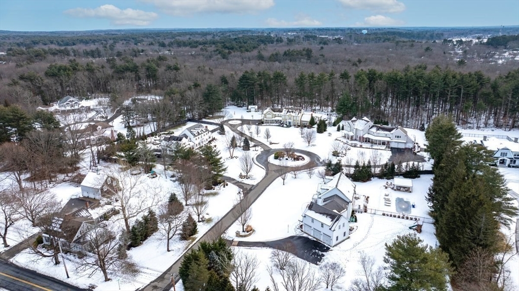 This extraordinary Colonial, privately sited on a cul-de-sac of 4 homes, is the epitome of indoor-outdoor luxury living, offering nearly 7,000 sq. ft. of finished space. The beautifully landscaped 1.39 acre lot is the ultimate retreat featuring a gunite pool, hot tub, cabana, firepit, putting green, & a newly added multi-sport court (set up for pickleball & basketball). A stunning foyer, w/soaring ceilings & custom wall paneling, sets the tone for the rest of the home. Complete with a nearly 10' center island & high-end appliances, the chef's kitchen offers a seamless flow to the LR, DR, study, & deck. Also situated on the main level, a guest en-suite. Upstairs, the expansive primary en-suite is a sanctuary, while 2 add’l bedrooms (1 en-suite), hall bath, & office round out the 2nd floor. The recently finished attic is a showstopper, w/golf simulator & screening room. Prime spot for commuters, w/quick access to Rte. 3. This spectacular home is the perfect blend of recreation & luxury.