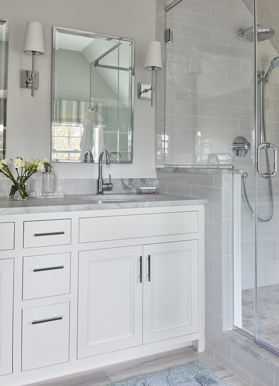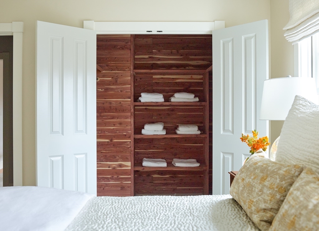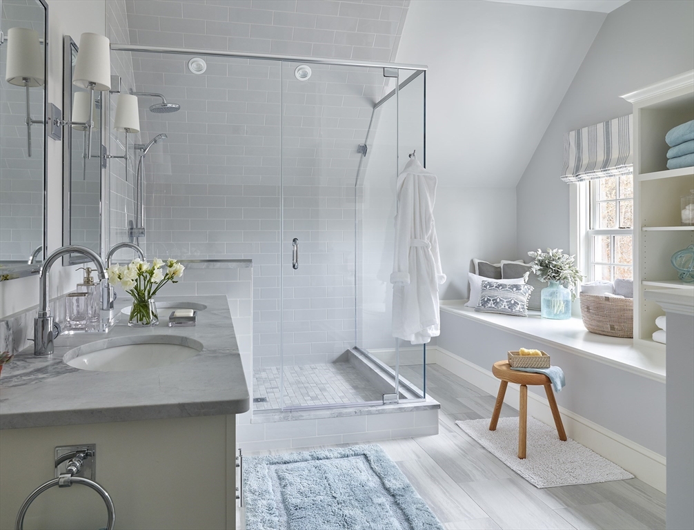This exquisite shingle-style home, built in 2004 & updated in 2018, offers elegant country living on a secluded 6.5-acre lot with forest views. The residence showcases quality craftsmanship, detailed built-in cabinetry, and oversized windows that fill the space with natural light. At its heart is a gorgeous gourmet kitchen featuring two large islands with walnut and quartzite countertops, a large pantry, a wrap-around bar and seamless flow into the family & sunroom. The grand entry foyer opens to a formal dining room and a front-to-back living room, which also functions as a media room. Upstairs, the spacious primary suite boasts a cathedral ceiling, a window seat, double closets, and an ensuite bath, while three additional bedrooms, a bathroom, and a laundry room complete the second floor. The top level offers a private retreat with a large bedroom, a sleeping window seat, and a luxurious bathroom. The large level fenced backyard features a bluestone patio with a firepit and hot tub.