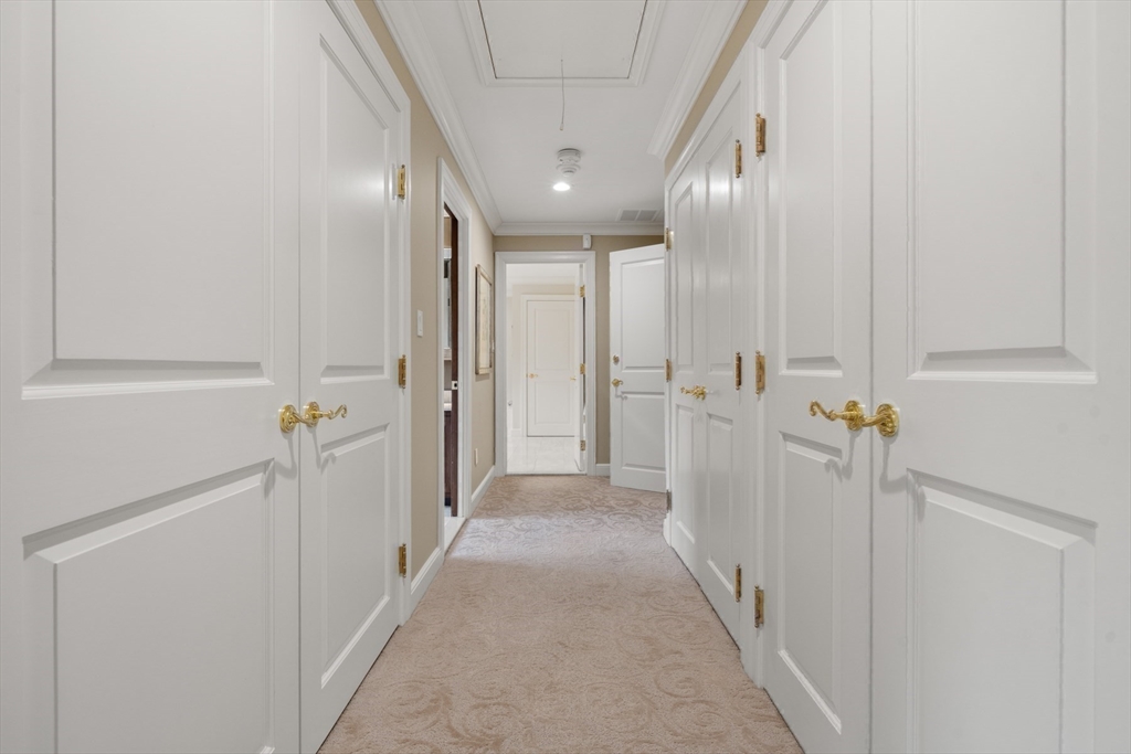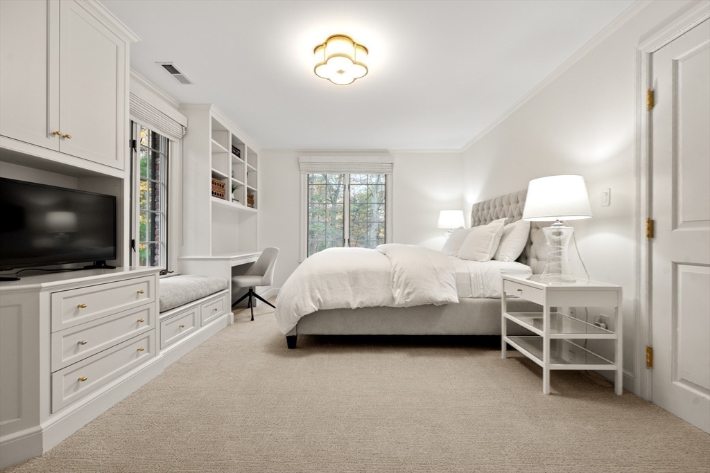 This stately Weston Estates Colonial blends timeless elegance with modern comfort. A graceful curved staircase sets the tone for the home’s sophisticated ambience. The wood-paneled library with fireplace offers a warm private retreat. Architectural windows and hardwood floors highlight custom details throughout. The expansive living room with fireplace and grand dining room are ideal for entertaining. The kitchen features high-end appliances, a center island, and a lovely eat-in area that opens to a stunning family room with a fireplace and custom millwork. A large deck and enclosed porch overlook the beautifully manicured, serene grounds. The impressive primary suite offers dual baths, generous closets, and a sitting area with fireplace. Three additional spacious bedrooms complete the second floor. The walk-out lower level includes a versatile fifth bedroom/playroom, gym/yoga room and full bathroom. Convenient to the airport, Boston, and Cambridge.