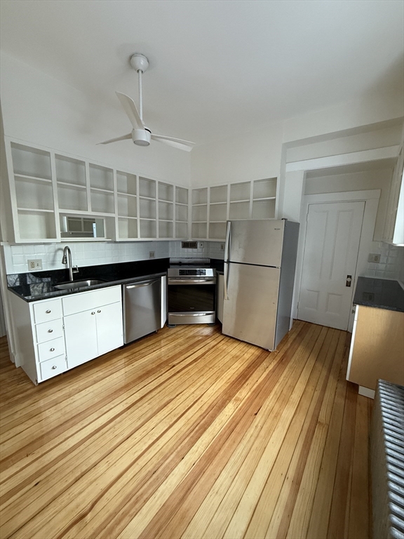 This gorgeous two-bedroom, one-bathroom apartment includes an office and off-street parking. The kitchen features stainless steel appliances and granite countertops. The unit has been updated with recently refinished floors and fresh paint throughout.Large windows provide an abundance of natural light in every room. For your convenience, free laundry is available in the basement.