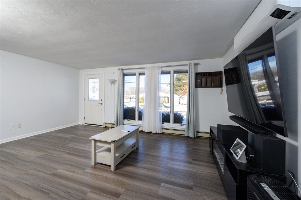 Welcome to 95 Rindone St—this meticulously maintained, one-level home tucked away on a quiet side street is the one you’ve been waiting for. This 3-bedroom, 1-bath property features an eat-in kitchen with maple cabinets, Corian countertops, recessed lighting, and vinyl plank flooring throughout. The updated bath and sun-filled living room with large windows add to the home’s inviting feel. Enjoy year-round comfort with four new mini-splits providing both heat and A/C. Additional highlights include fresh interior paint, a one-car garage, deck, three-season porch, shed, and a spacious backyard perfect for entertaining. Conveniently located near shopping, highways, commuter rail, and more.