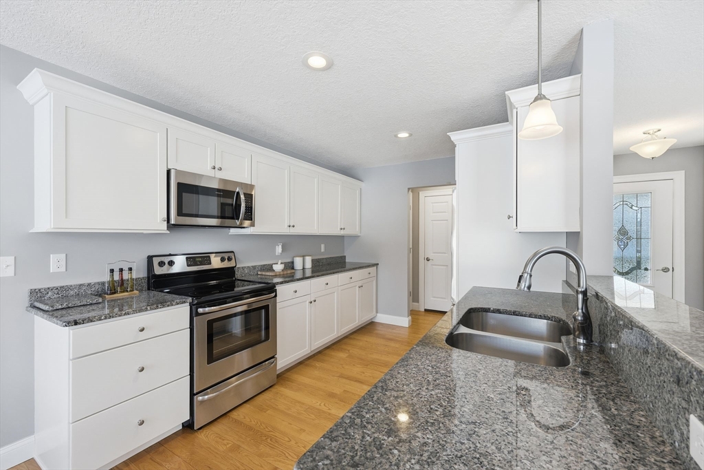 FIRST FLOOR LIVING! There’s something special about a home that feels easy the moment you walk in, & this meticulously maintained single level condo delivers exactly that. Thoughtfully laid out with an open flow, the living, dining, & kitchen areas connect seamlessly, creating a bright & functional space for everyday living, with sliding glass doors off the living area that bring in natural light and lead to a private deck. Hardwood floors run throughout the main areas, complemented by neutral finishes. The kitchen features white cabinetry, granite countertops, stainless steel appliances, & generous counter space. The primary suite offers a private full bath & walk-in closet. A second bedroom is located near a full bathroom & laundry closet. The clean basement ready for additional space. The attached garage adds year round convenience. Located within the adult living community at Paradise Creek w/ close proximity to shopping, dining, & highways. Maintenance free lifestyle awaits!