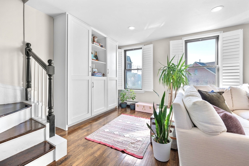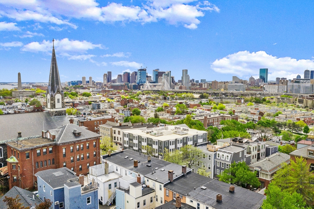Penthouse with deeded parking! This expansive 3 bed/2 bath duplex offers an idyllic floor plan with high ceilings, historic detail, and exceptional natural light throughout. The spacious, inviting living area—complete with views—creates the perfect setting to relax or entertain. Magazine-quality kitchen features custom cabinetry, SS appliances, and a center island with breakfast bar. Host the holidays in your formal dining room! The upper level boasts a primary bedroom with picture-frame molding, double closets, and ample space for a king-size bed. Two generous guest beds are ideal for a growing family. Modern baths showcase designer vanities, custom tile, and frameless glass shower. Both levels offer flexible space for a home office. Enjoy the warmer months ahead on your direct-access private deck. An exclusive finished basement provides bonus space for storage, WFH, and/or a home gym. Central AC. in-unit laundry. 1 car parking. A rare opportunity to “have it all" in Charlestown!