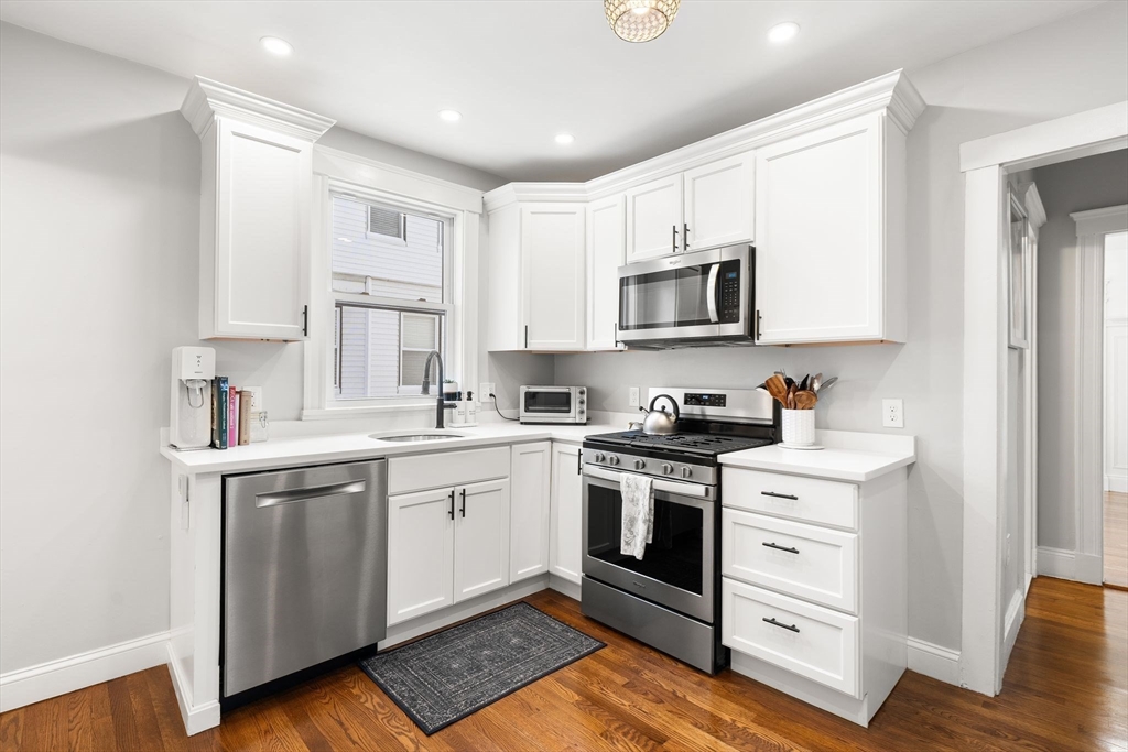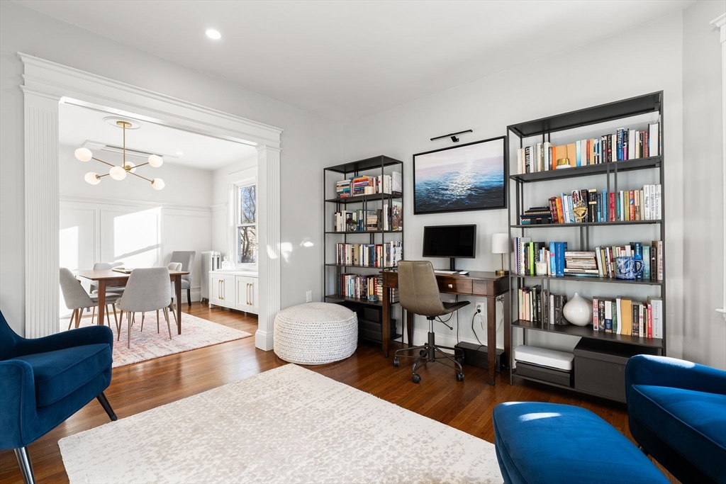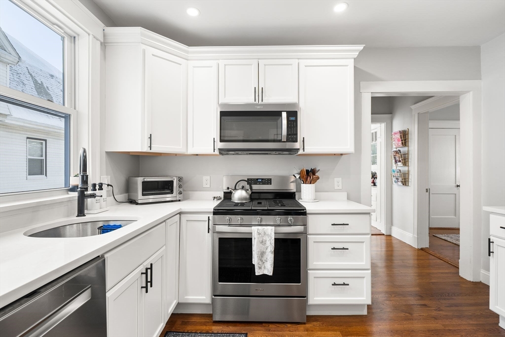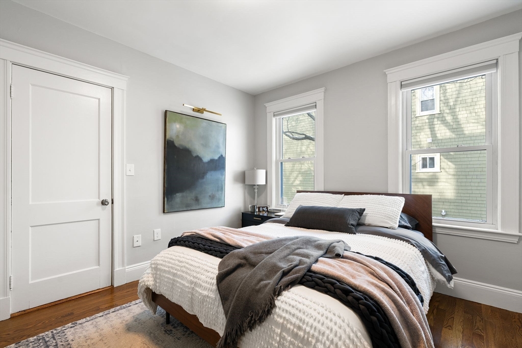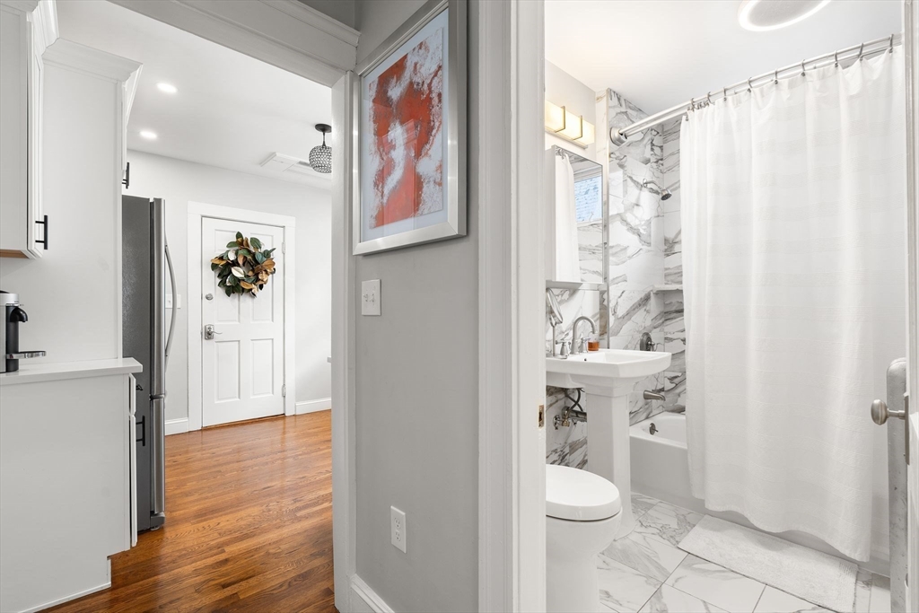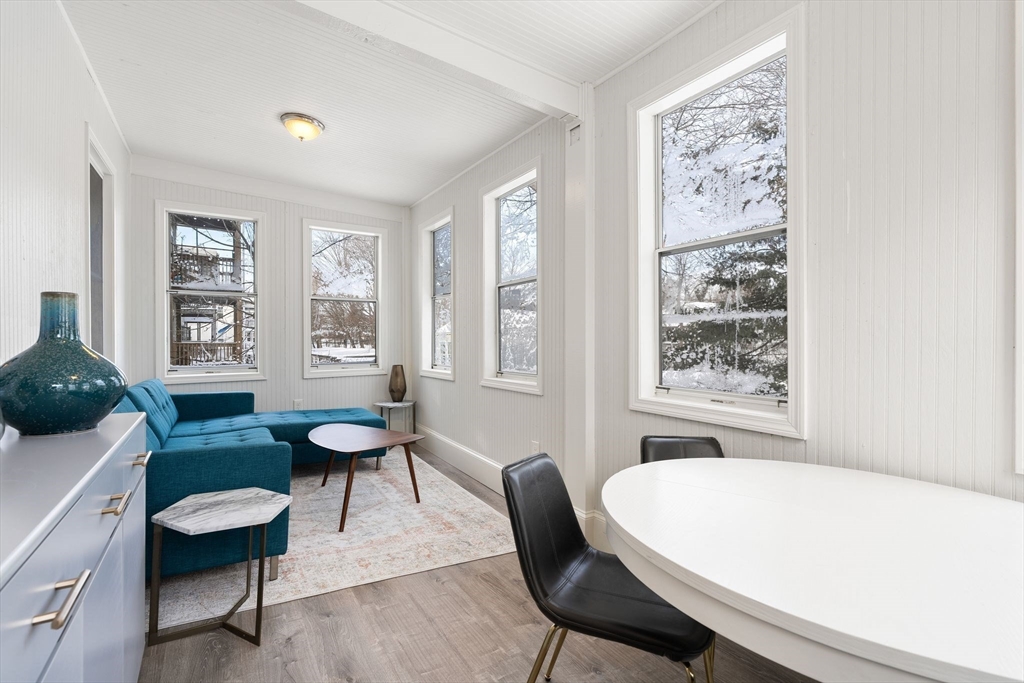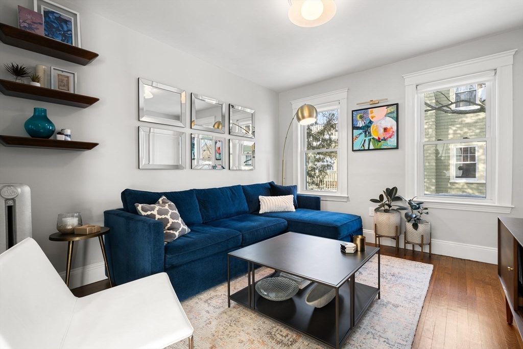 Welcome to this beautifully updated 3-bedroom, 1.5-bath condo offering 1,275 sq ft of bright, thoughtfully designed living space in one of Roslindale’s most desirable locations. Just moments from Roslindale Village, this second-floor home combines modern comfort with the convenience of neighborhood living. Coffee shops, restaurants, parks, and the commuter rail are all nearby. The open living and dining area features oversized windows that fill the space with natural light. The home has hardwood floors throughout, giving it a sense of warmth. The updated kitchen connects seamlessly to the main living areas. Three well-sized bedrooms provide flexibility for a home office, guest room, or primary retreat. Additional highlights include a covered deck, private laundry, recessed mini-split heating and cooling, deeded off-street parking, private storage, and shared outdoor space. Thoughtfully updated, well-located, and easy to love, this home checks all the right boxes.