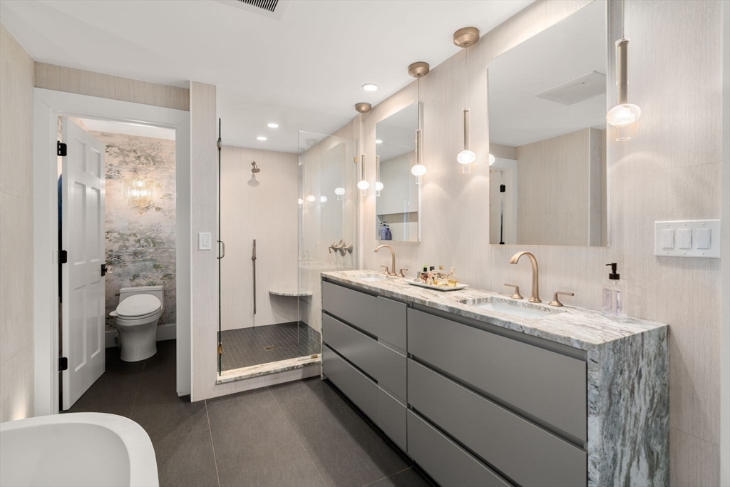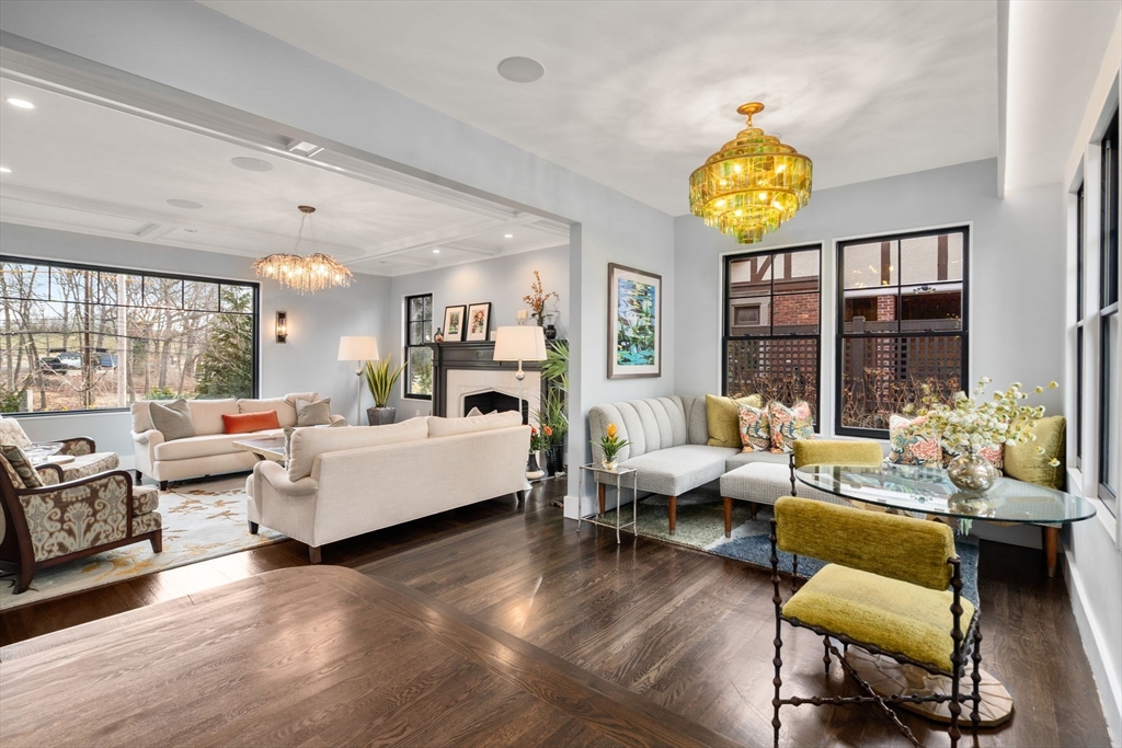 Timeless Tudor architecture elevated by a masterfully executed, full studs-in renovation delivering a light-filled, sophisticated interior w/ exceptional flow. Set on the coveted Commonwealth Ave Carriage Lane w/ traffic-free outdoor recreation beyond the front door. All 38 black architect-series Pella windows were placed, w/ enlarged openings, incl. a 16-foot glass slider that connects the main living space to the backyard, bringing in remarkable natural light & enhancing the home’s airy feel throughout. A chef-caliber kitchen features a generous center island, quartz counters, pro-grade stainless steel appliances, & dramatic marble backsplash to the ceiling. Lutron LED lighting & a wired Sonos system throughout elevate daily living, while the finished LL offers flexible space for office, media, or guests. Outdoors, prof landscaping by Sudbury Design incl. a multi-tier bluestone patio w/ built-in grilling station & firepit, creating a private setting for entertaining or quiet retreat.