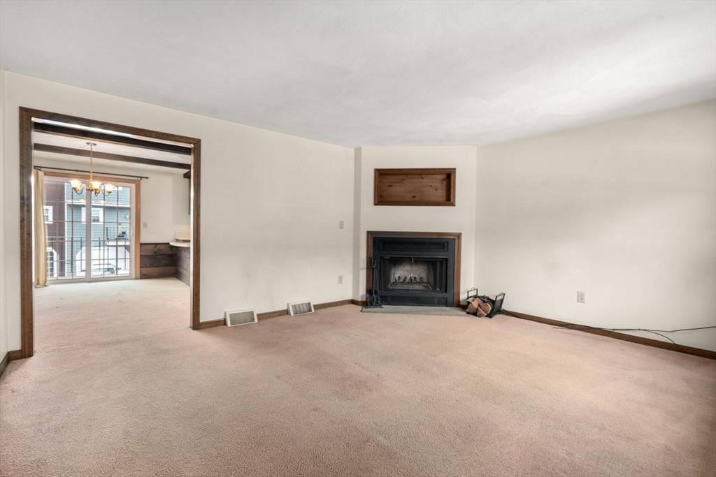 Welcome to Hitchin' Post Condominiums where convenience meets comfort in this highly desirable community that people love to call home! No more snow shoveling, just pull in to your garage and up you go. Well laid out kitchen opens to a large dining room with slider to a private deck. Fireplaced living room is perfect for those cold winter evenings. Half bathroom with washer/dryer complete this floor. 2 large second floor bedrooms with ample closet space. Well placed full bathroom and vanity closet round out this level. Enjoy summers by the association pool and playing basketball. This is a wonderful commuter location with close-by highways. Enjoy all that Chelmsford has to offer including shops, restaurants and living in this picturesque New England town.