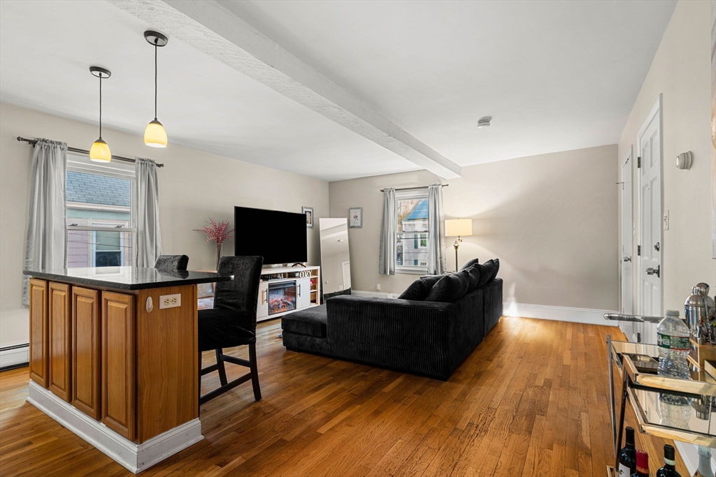 Charming one-bedroom, one-bath condo in the heart of historic Andover Center, just steps to shops, restaurants, the commuter rail, and vibrant Main Street living. This thoughtfully updated unit features an open-concept layout with gleaming hardwood floors throughout, a bright living/dining area, and a modern kitchen with granite countertops and stainless-steel appliances — perfect for both everyday living and entertaining. The full bathroom is conveniently located adjacent to the spacious bedroom, and ample closet space maximizes storage. Located in a classic four-unit building originally constructed circa 1900 (renovated in 2006), this home blends original New England charm with contemporary touches. Residents enjoy shared laundry facilities, a designated storage area in the basement, and two deeded off-street parking spaces. Heat, water and sewer are included in the condo fee, simplifying monthly living costs. Great option for first time home buyers, downsizers and investors.
