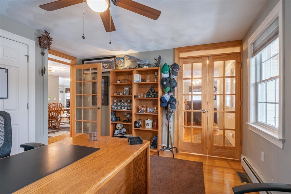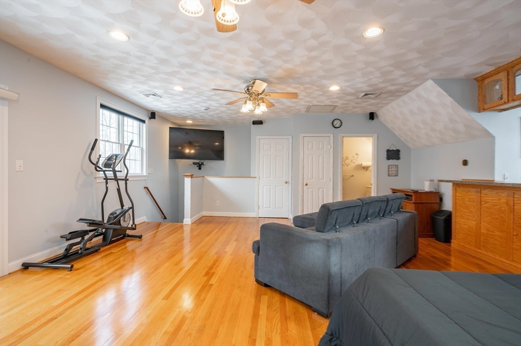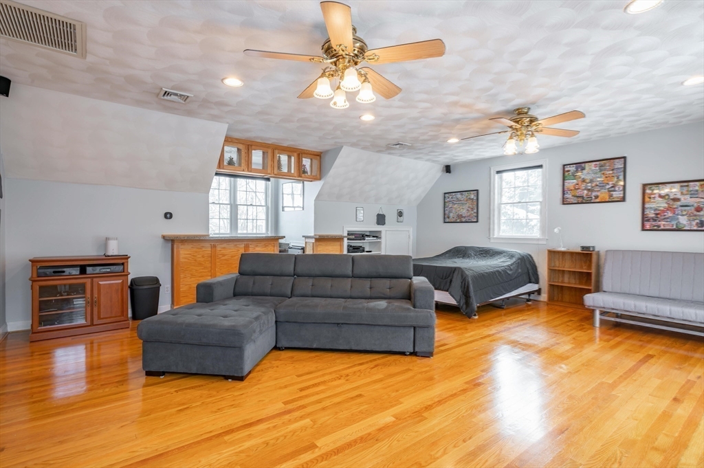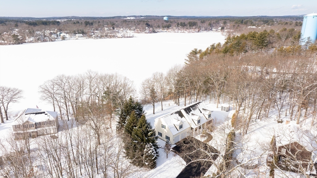 Welcome to your beautiful lake view property in desirable North Chelmsford. This expansive Cape style home sits with gorgeous lake views from every room along the backside of the house and access to Freeman Lake. Hardwood floors fill the main level complete with dedicated office space behind french doors, an updated kitchen with state of the art downdraft venting for the gas stove and direct access to the back deck to take in the sunset over the water. The primary bedroom suite overlooking the lake and includes a large bath with separate shower and soaking tub. Don't forget to check out the incredible space above the garage perfect for a Great Room, Guest Suite or just a place to entertain or escape to with it's own 3/4 bathroom, a wet bar and of course more views of the water. Complete with Whole House Generator and owned Solar Panels that provide YOU with a credit each month, this home truly has it all.