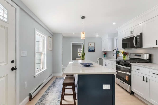 Discover the charm of this single-family home located on a quiet court in the desirable Lakeside Wyoma Square neighborhood. This residence offers three bedrooms and two full bathrooms, providing comfortable and functional living space. With approximately 974 square feet of living area, the layout is efficiently designed to maximize space. Set on a 5,554 sq ft lot, the property offers outdoor space ideal for gardening, relaxing, or entertaining. .Recent improvements include a brand-new kitchen featuring white shaker cabinets and stainless steel appliances, new flooring throughout, two newly renovated bathrooms, laundry hookup, updated plumbing and electrical systems, and a freshly painted interior and exterior. A great opportunity to enjoy a move-in ready home in a convenient Lynn location. Close to schools, shopping , restaurants , public transportation, golf course, public beach, and easy access to highways.