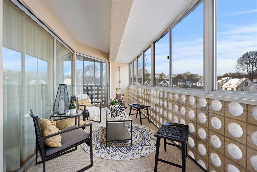 Imagine if you didn't need to shovel your driveway or stairs this weekend and instead could swim in your indoor pool? Imagine the option to take the elevator to your front door with your heavy groceries? Imagine living in the heart of Melrose in a cozy 2 bedroom condo in a well managed building with all the amenities!? Your dream can be a reality! Park your car in your exclusive parking spot, enter into the recently renovated front foyer, take the elevator to the 4th floor and relax at home in your sun drenched corner unit. With a perfectly laid out kitchen with plenty of cabinet space that opens up to a spacious dining room/living room you can entertain family and guests. The two perfectly sized bedrooms both have ample closet space. The star of the show is the front to back enclosed porch! Access from both the primary bedroom and living room. A year round dream! Don't miss the tennis courts, indoor & outdoor pools, and dedicated storage unit. Walk to Whole Foods & everything Melrose!