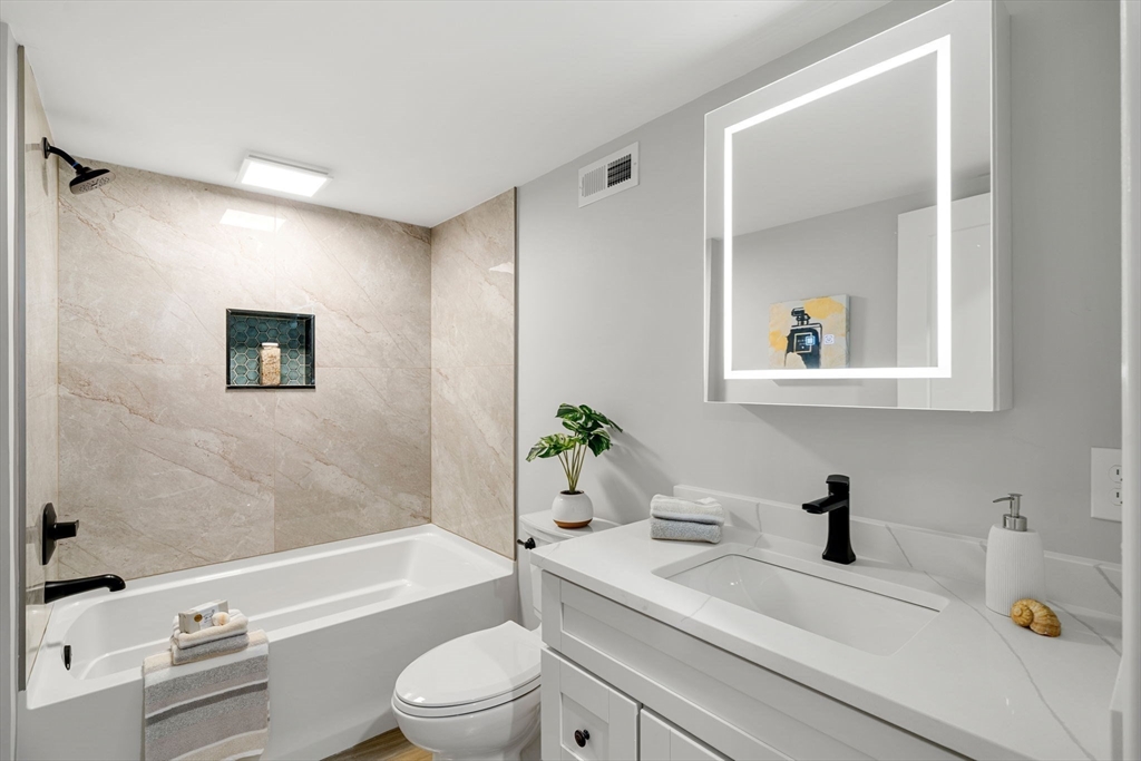 This beautifully crafted NEW CONSTRUCTION IN LOWELL feels BRIGHT, OPEN & INVITING from the moment you step inside. Sun-filled space with engineered hardwood floors throughout create an airy and joyful atmosphere. HOME offers 3 BEDROOMS & 3.5 BATHROOMS, including PRIMARY BEDROOM WITH PRIVATE EN-SUITE BATH providing a calm retreat. All bathrooms feature modern finishes, clean lines & thoughtful details. The heart of the home - SPACIOUS KITCHEN WITH A GRAND ISLAND, perfect for cooking, gathering & entertaining. The layout flows naturally & supports both daily living and special moments. The FULLY FINISHED BASEMENT adds valuable flexible space ideal for a family room, home office, gym or play area. Outside enjoy STRONG CURB APPEAL with PAVED FRONT entry, SIDEWALKS, DRIVEWAY & PATIO, while the EXTERIOR IS tastefully wrapped WITH NATURAL STONE, complemented by 1 CAR GARAGE. Conveniently located near UMASS LOWELL, COMMUTER RAIL, SHOPPING, DINING, PARKS with EASY ACCESS TO ROUTE 3 & ROUTE 495.