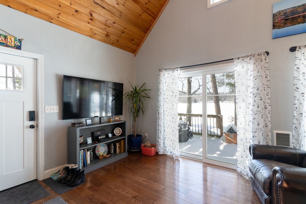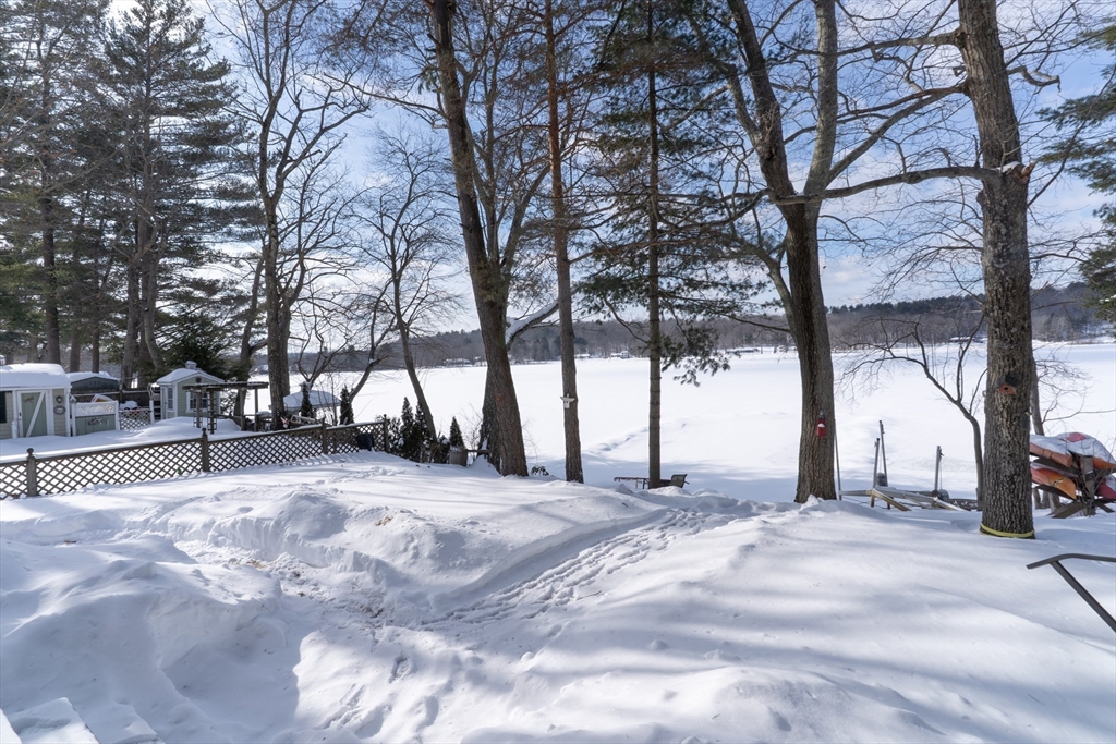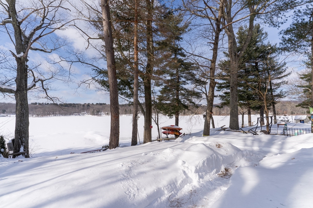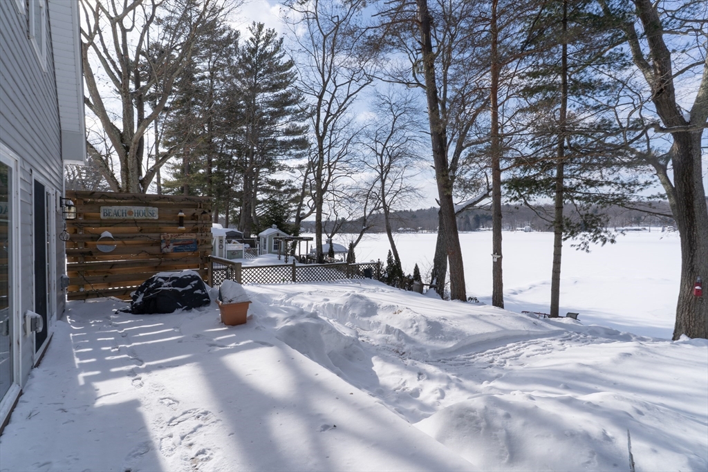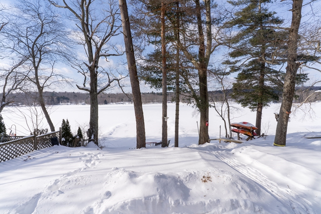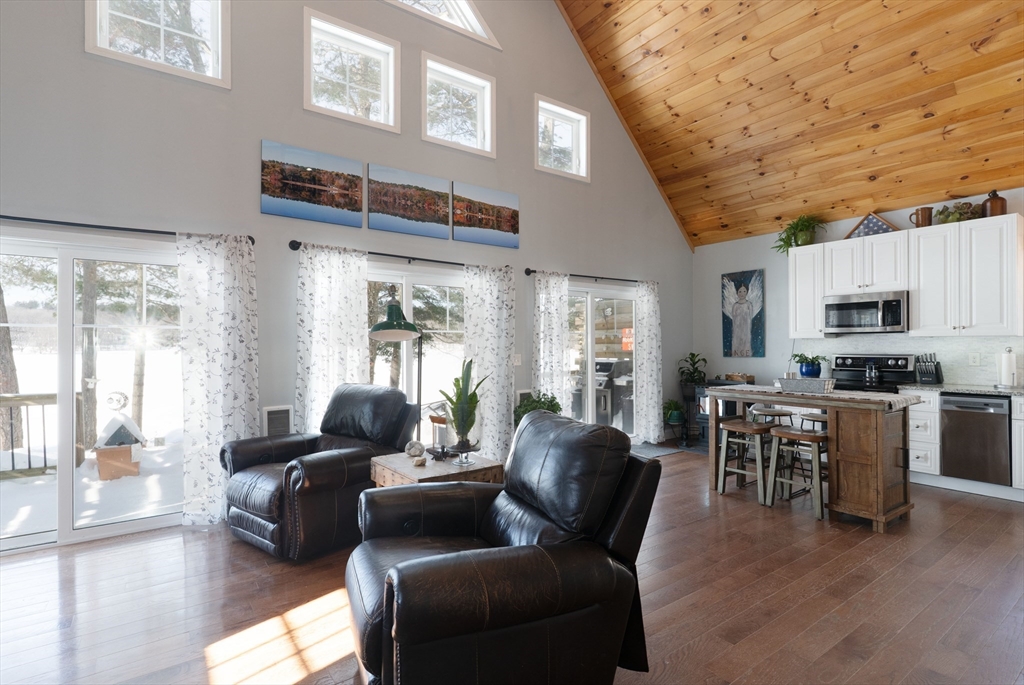 Waterfront living on Sherman Lake! Built in 2019, this beautifully maintained 3-bedroom, 2-bath Cape offers year-round recreational enjoyment in a serene lake setting. The open-concept living space showcases planked cathedral ceilings, hardwood floors, recessed lighting, and a bright kitchen with granite countertops and dining area. A spacious living room with triple sliders opens to a large deck overlooking the water, perfect for relaxing or entertaining. The first-floor primary bedroom features a full bath, with an additional bedroom and second full bath nearby. Upstairs, a vaulted third bedroom provides flexible space for guests or a home office. Additional highlights include energy-efficient construction, pellet stove, 200-amp service, and generator hookup. A rare opportunity for waterfront living with easy access to the MA Pike, Routes 20, 9 and 84! Tantasqua school district!!