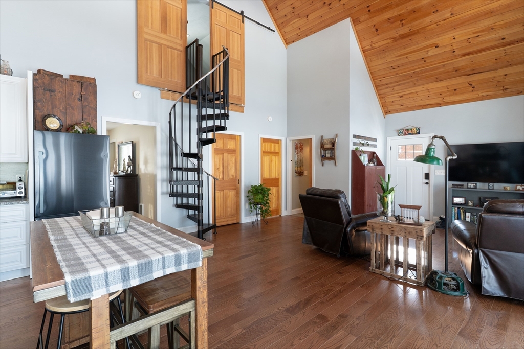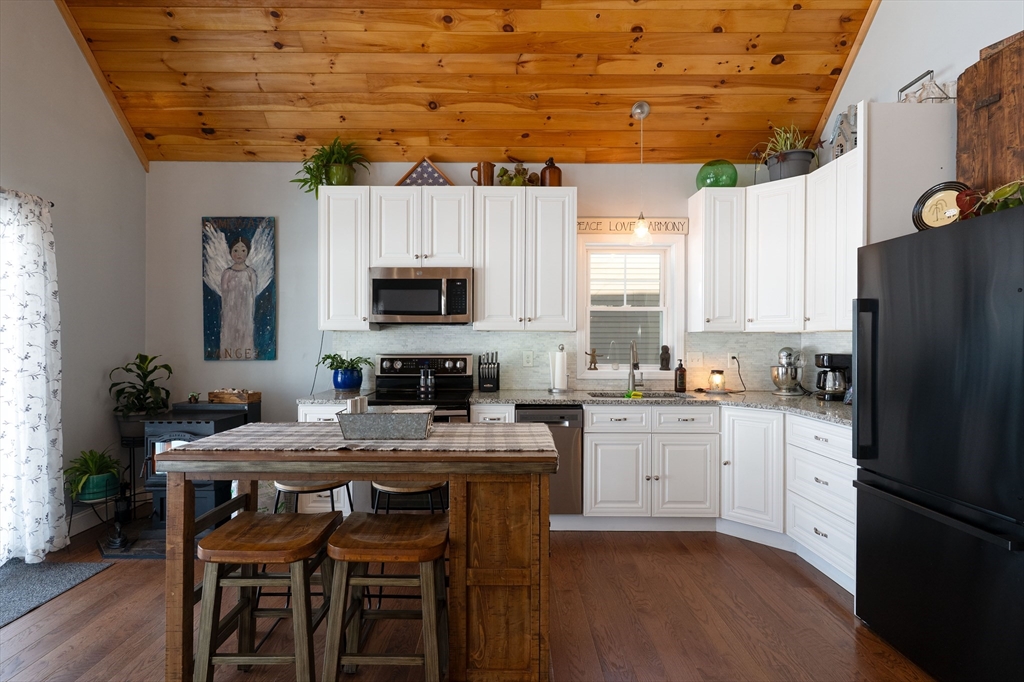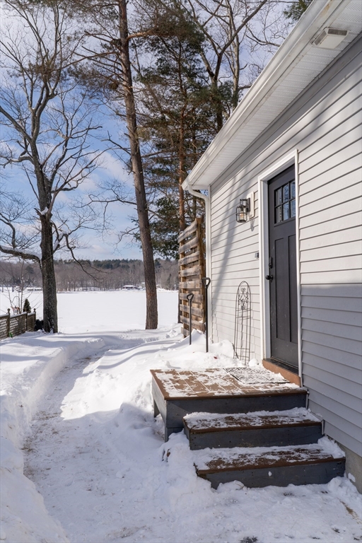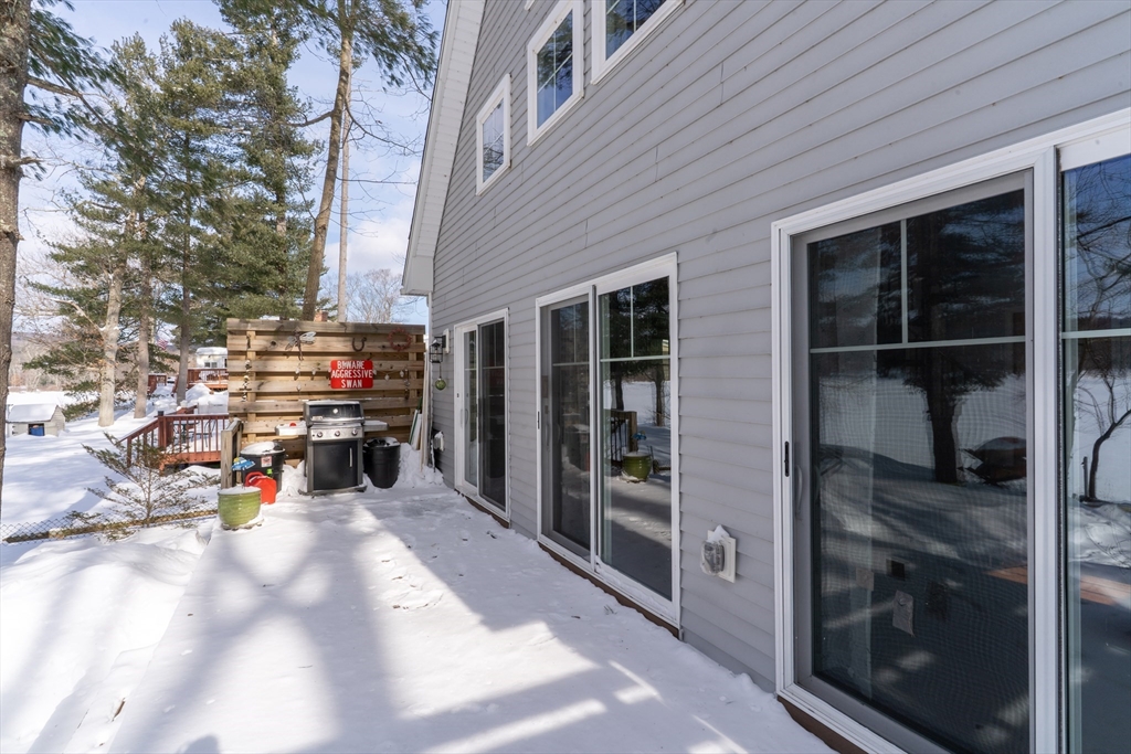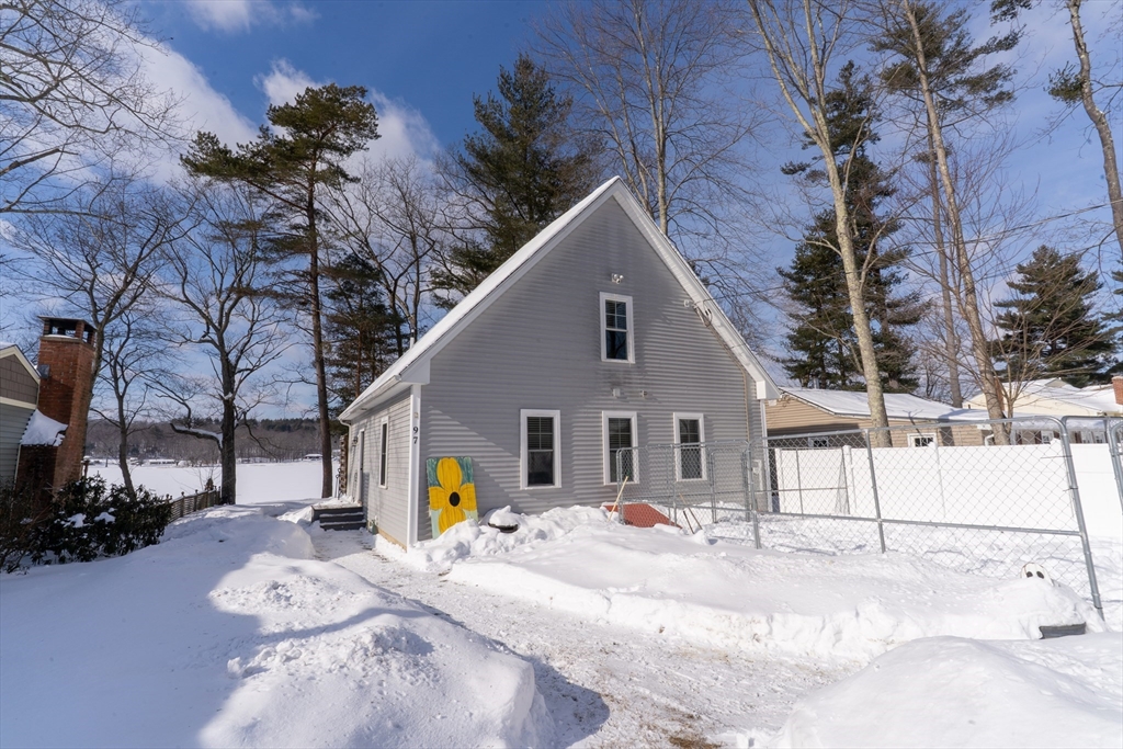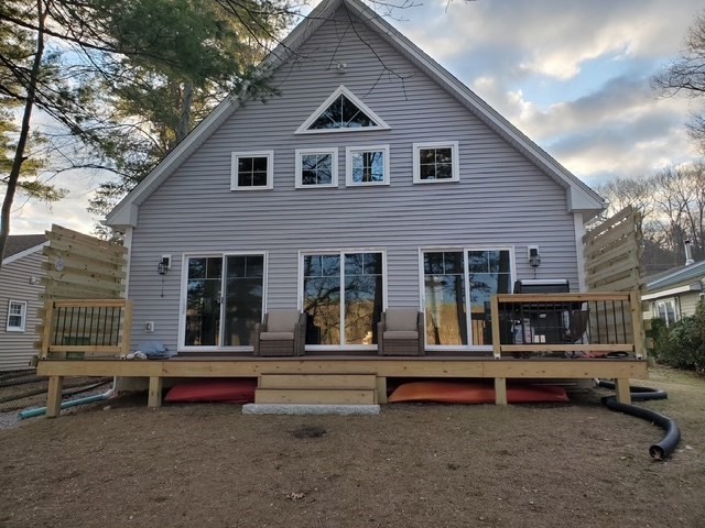 Waterfront living on Sherman Lake! Built in 2019, this beautifully maintained 3-bedroom, 2-bath Cape offers year-round recreational enjoyment in a serene lake setting. The open-concept living space showcases planked cathedral ceilings, hardwood floors, recessed lighting, and a bright kitchen with granite countertops and dining area. A spacious living room with triple sliders opens to a large deck overlooking the water, perfect for relaxing or entertaining. The first-floor primary bedroom features a full bath, with an additional bedroom and second full bath nearby. Upstairs, a vaulted third bedroom provides flexible space for guests or a home office. Additional highlights include energy-efficient construction, pellet stove, 200-amp service, and generator hookup. A rare opportunity for waterfront living with easy access to the MA Pike, Routes 20, 9 and 84! Tantasqua school district!!