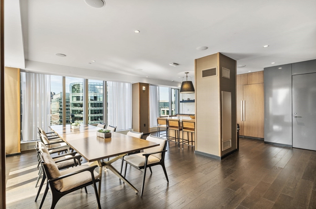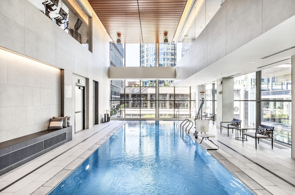 Welcome to Echelon, the epitome of modern urban living at a premier full-service building in the heart of the Seaport. Boasting a highly sought-after 08 layout, this upper-level home features a generously sized bedroom with a separate built-in office area. High-end finishes include a sleek modern kitchen with custom Italian cabinetry, quartz countertops, top-of-the-line Thermador appliances, wide white oak flooring, floor-to-ceiling windows and a spa-like bathroom. Echelon's exceptional amenities offer an unparalleled lifestyle. Residents enjoy amazing full service living with 24/7 concierge and over 50,000 sq ft of amenity space including indoor and outdoor pools, hot tub, state of the art fitness center, basketball court, sports simulator, yoga studio, private dining room, outdoor terraces with grills and fire pits, multiple lounges, business center and the Sky Lounge and Terrace.