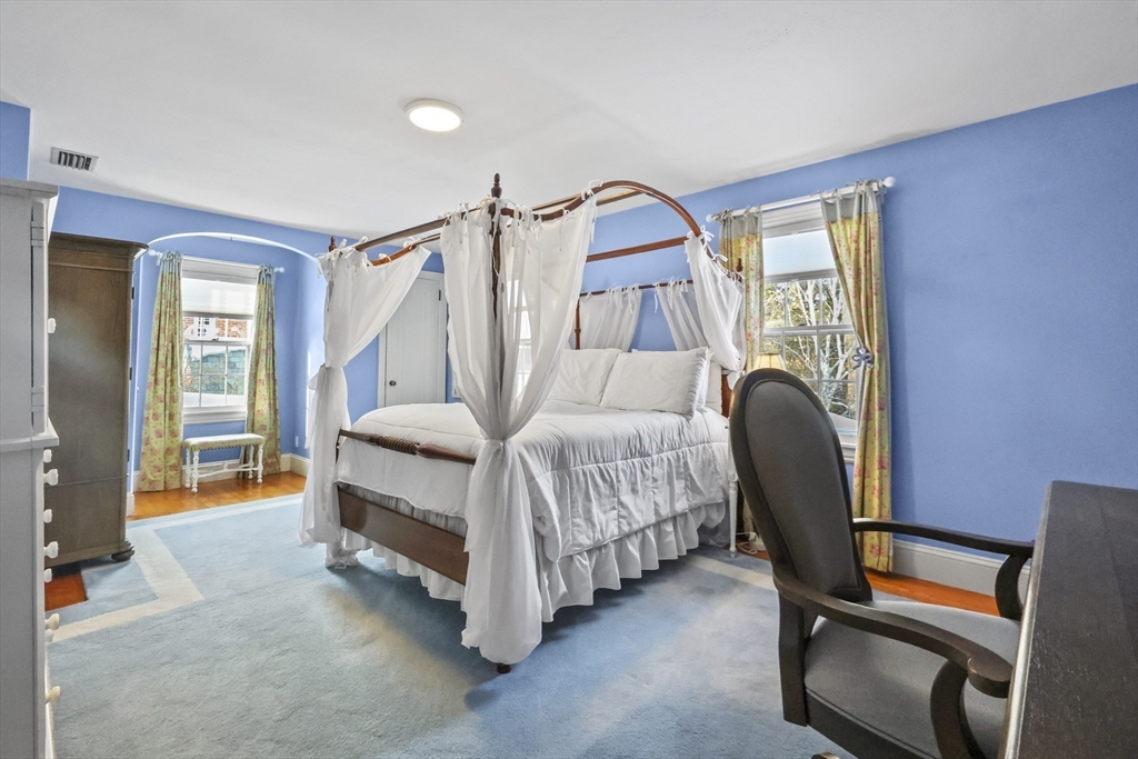 Stunning Tudor exudes timeless elegance & character, perfectly blending craftsmanship w/modern updates. Nestled on private lot, this property showcases exquisite millwork throughout, elegant arched entryways & gorgeous great room addition that opens to beautifully landscaped yard & bluestone patio. Step inside through the gracious foyer & be captivated by the flow & stately proportions. Kitchen boasts warm cherry cabinetry & ample footprint flowing effortlessly into gorgeous dining room adorned w/intricate millwork. Impressive living room features fireplace & arched passages leading to a cozy den, home office & expansive great room. 2nd floor offers two ensuite bedrooms plus two additional bedrooms sharing a well-appointed full bath. Finished 3rd floor provides flexible living space w/classic beadboard wainscoting- perfect for media room or guest suite. Nicely finished lower level creates inviting retreat w/stone fireplace, dedicated wine cellar, laundry room & practical mudroom area.