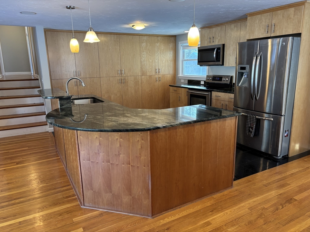 PROFESSIONAL PHOTOS COMING! Beautifully maintained and move-in ready, this four-bedroom, two-bath home offers comfort, flexibility, and charm in a highly walkable, bike-friendly neighborhood. Step through the foyer into the sun-filled family room with generous windows and a long, inviting window seat, From here head outside to the large stone patio and fire pit. The first floor also features a spacious primary bedroom with fireplace, dedicated office, and adjacent full bath. A few steps up and a large living room welcomes you with another fireplace and a picture window that fills the space with natural light. The fabulous kitchen includes a large island with breakfast bar and stainless appliances, and opens to a dining room and adjoining sunporch. Down the hall three additional bedrooms share a beautifully appointed bath with double sinks, a large tiled shower, and soaking tub. The private, level, .58 acre, backyard completes this exceptional home. Located near schools and town center.