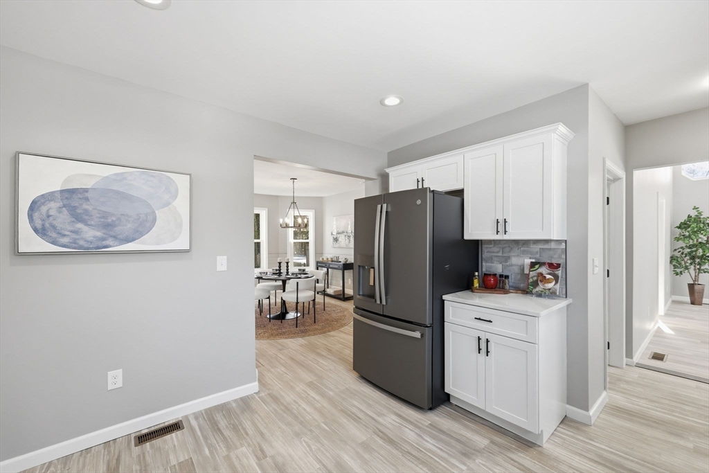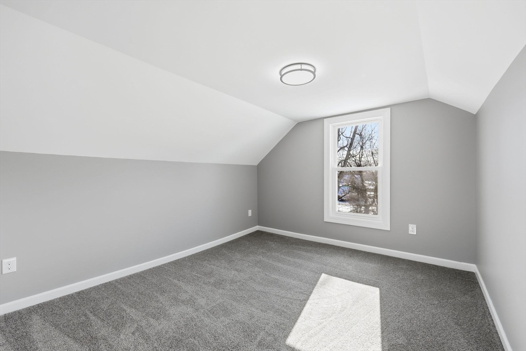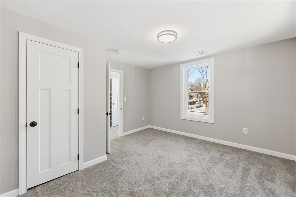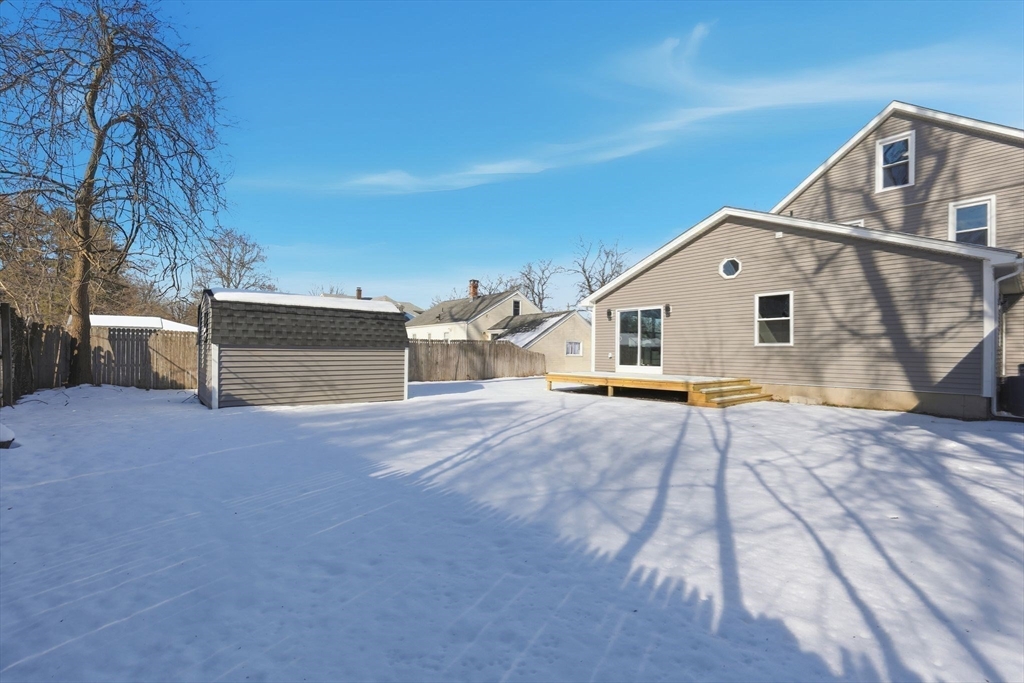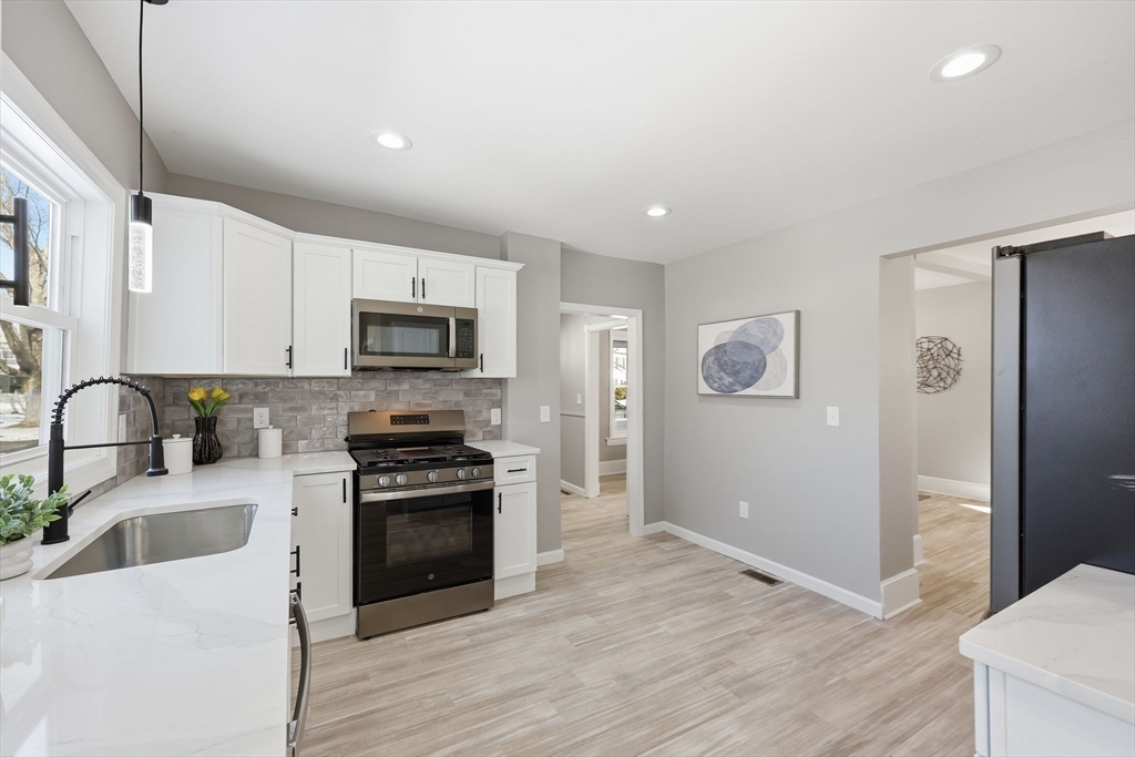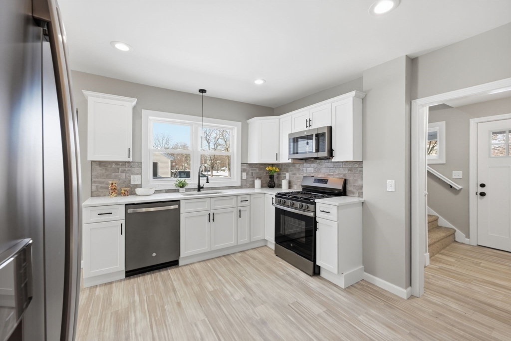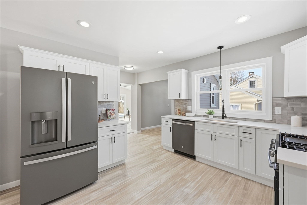 Set in the highly regarded community of Longmeadow, this fully renovated 9 room Colonial offers a blend of sophisticated style and modern updates. The main level features a sun filled family room w/ a vaulted ceiling & sliding glass doors that open to a private backyard w/ a 12x20 deck. A formal living room & dining room provide defined spaces. The kitchen has been completely updated w/ new cabinetry, granite tops, SS appliances & backsplash. A first floor primary suite adds convenience & privacy, featuring a walk in closet & a full bath w/ a walk in shower. Main level laundry room complimented by a half bath.The second floor offers three additional bedrooms w/ new wall-to-wall carpeting, along w/ a full bathroom. The finished third floor attic adds approximately 200 square feet of bonus space, ideal for a home office, study, or retreat. Additional highlights include one car garage, a NEW (2025) roof, furnace, hot water heater, siding, garage door and windows! Just in time for Spring!