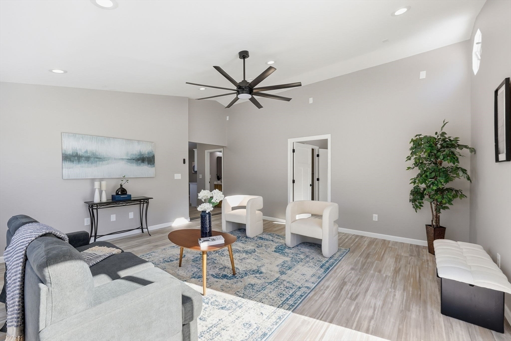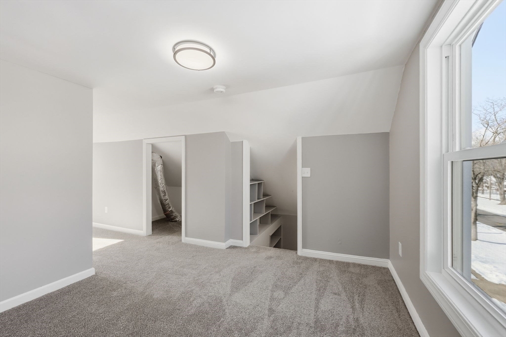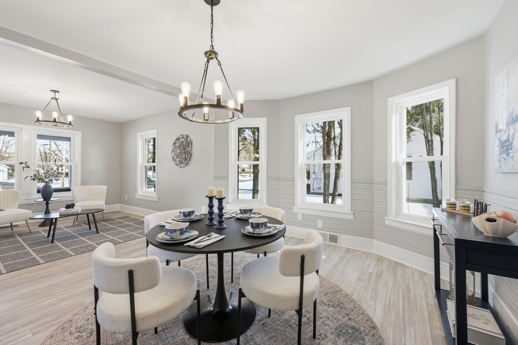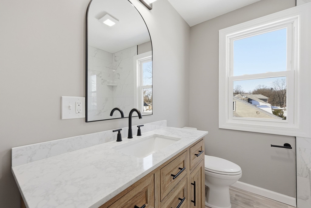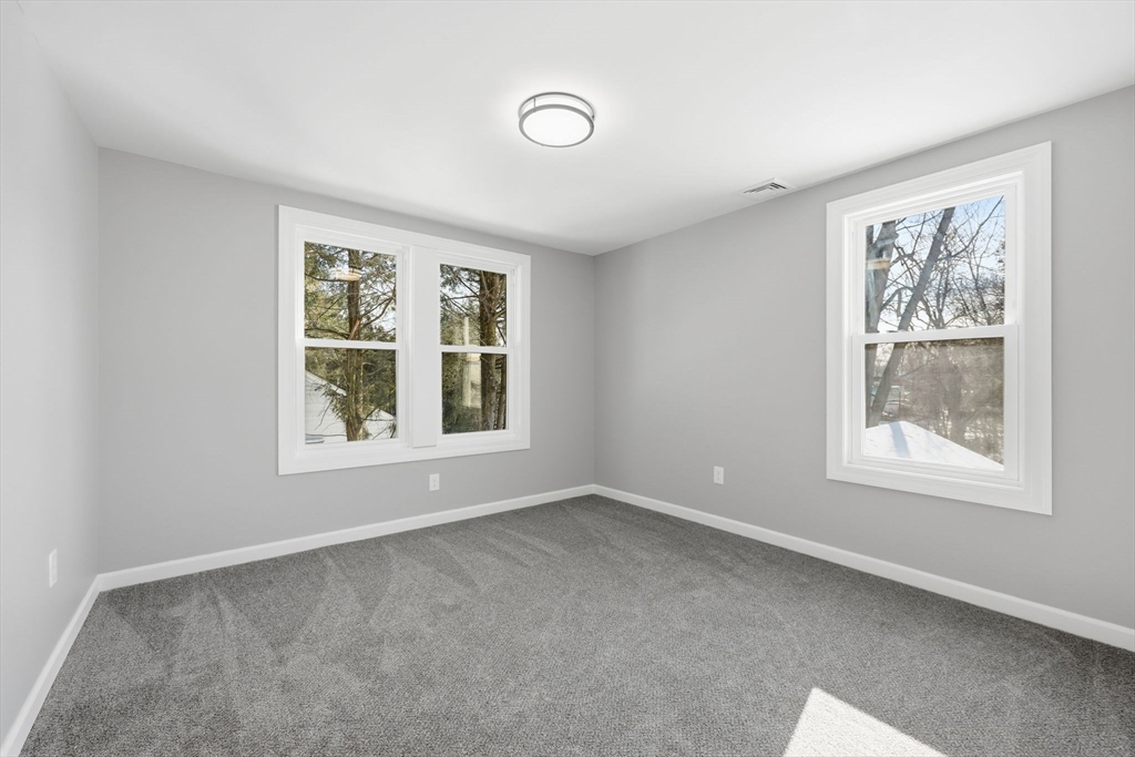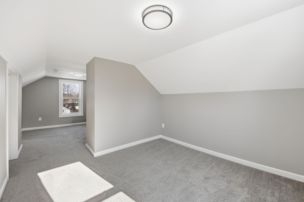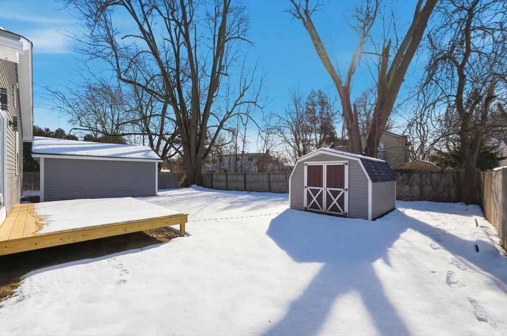Set in the highly regarded community of Longmeadow, this fully renovated 9 room Colonial offers a blend of sophisticated style and modern updates. The main level features a sun filled family room w/ a vaulted ceiling & sliding glass doors that open to a private backyard w/ a 12x20 deck. A formal living room & dining room provide defined spaces. The kitchen has been completely updated w/ new cabinetry, granite tops, SS appliances & backsplash. A first floor primary suite adds convenience & privacy, featuring a walk in closet & a full bath w/ a walk in shower. Main level laundry room complimented by a half bath.The second floor offers three additional bedrooms w/ new wall-to-wall carpeting, along w/ a full bathroom. The finished third floor attic adds approximately 200 square feet of bonus space, ideal for a home office, study, or retreat. Additional highlights include one car garage, a NEW (2025) roof, furnace, hot water heater, siding, garage door and windows! Just in time for Spring!