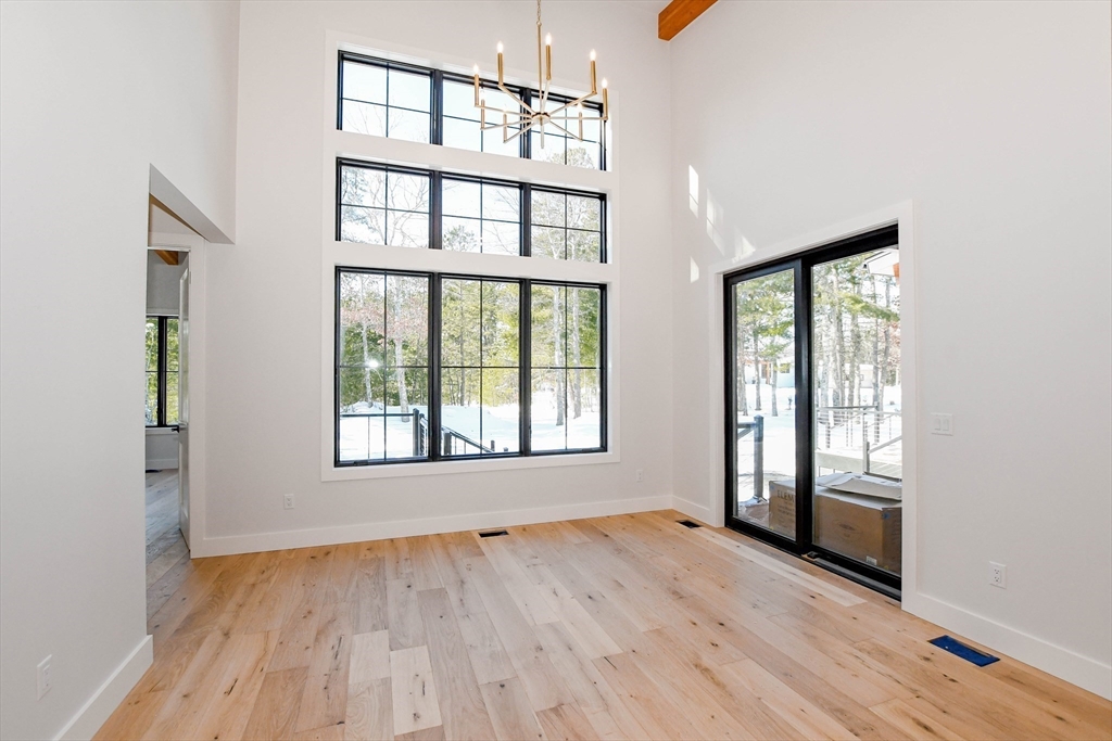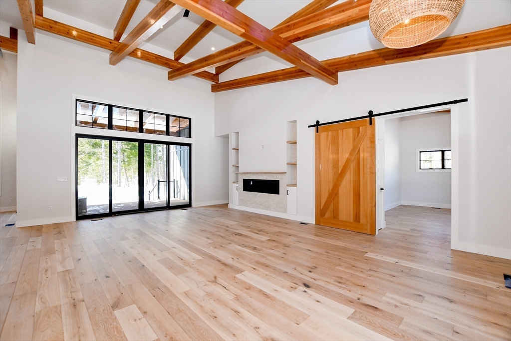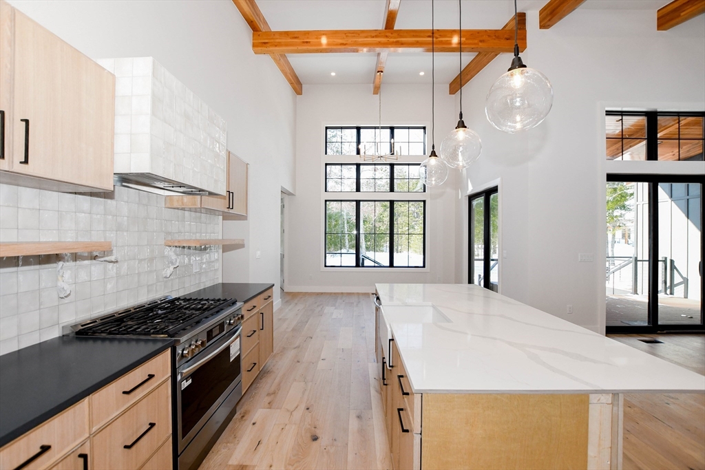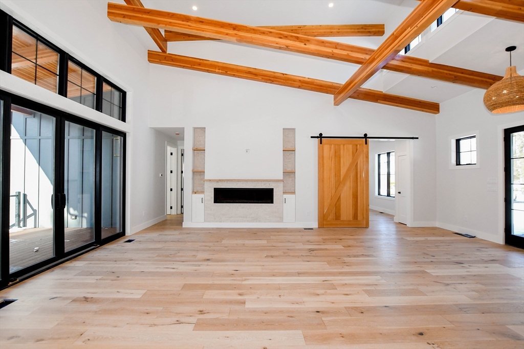 An exceptional residence offering a striking sense of arrival, where light, scale, and thoughtful design create an immediate impression. This home embodies modern Scandinavian elegance, blending clean architectural lines with warm, sun-drenched interiors ideal for refined entertaining. Built by a quality craftsman with uncompromising attention to detail, the home features soaring ceilings accented by exposed beams, expansive 8-foot sliders, and wide-plank oak flooring throughout. The gourmet kitchen is both sophisticated and functional, appointed with upscale appliances and a generous pantry. Three beautifully proportioned bedrooms and 2.5 baths offer serene private spaces, while an oversized two-car garage provides everyday ease. A full basement presents limitless potential for future living, recreation, or customization. Timeless, luxurious, and impeccably executed, this home delivers a rare blend of style and substance. Come to see it Sat Jan 31st from 11-1