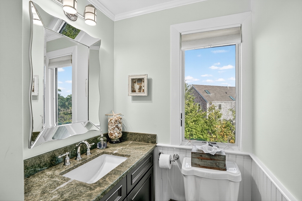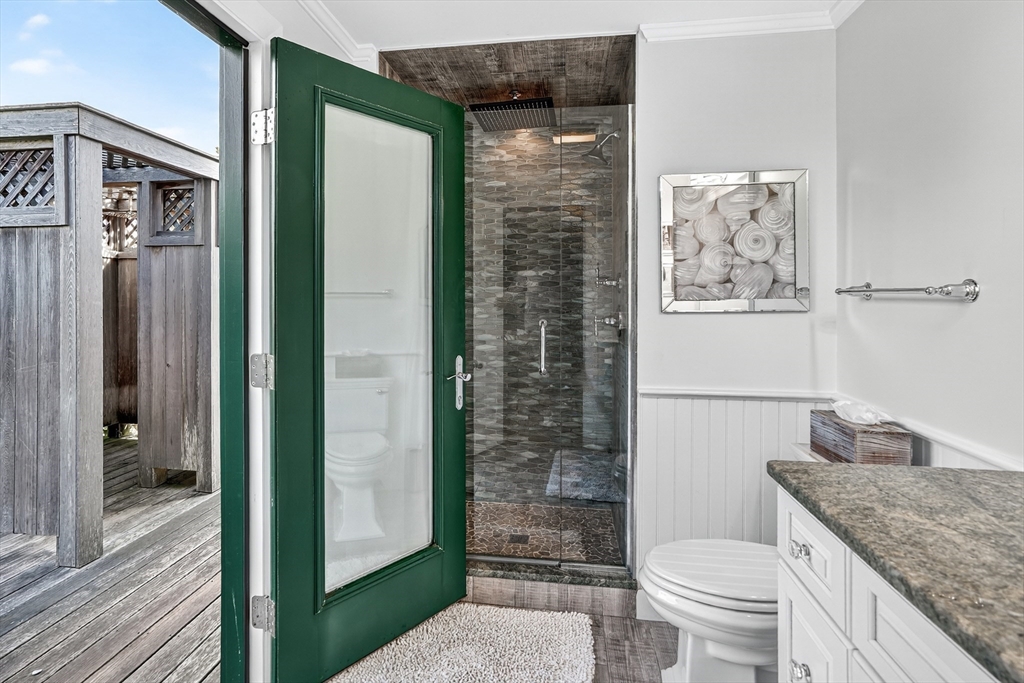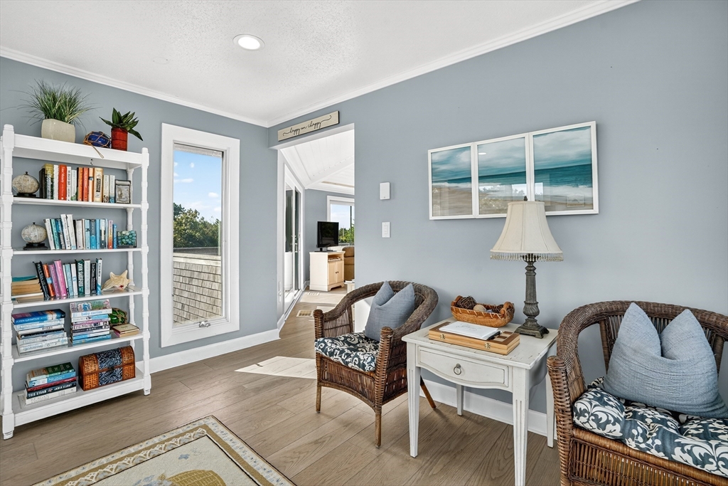 This stunning reverse-contemporary four-bedroom custom home is perfectly situated in one of Chappaquiddick's most sought-after locations. Designed with an expansive open-concept floor plan, the airy and inviting living area flows seamlessly onto a generous wraparound deck, where sweeping, bird's-eye views capture the natural beauty that surrounds you. Thoughtfully renovated, the home blends modern updates with custom finishes to create a rare balance of style, comfort, and year-round functionality an uncommon find in this idyllic setting. Enjoy direct access to Katama Bay, just a three-minute stroll down the road. Its calm waters and sandy shoreline are ideal for swimming, boating, and shellfishing. Nearby, the Wasque Preserve offers over 200 acres. of pristine conservation land, with scenic trails, abundant wildlife, and direct ocean access. Whether you're seeking a serene coastal retreat, a multi-generational family home, or a proven investment property, 76 Washque has it all. With