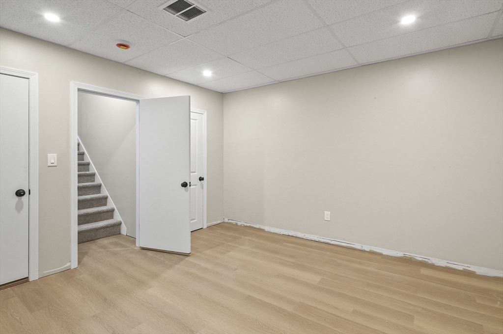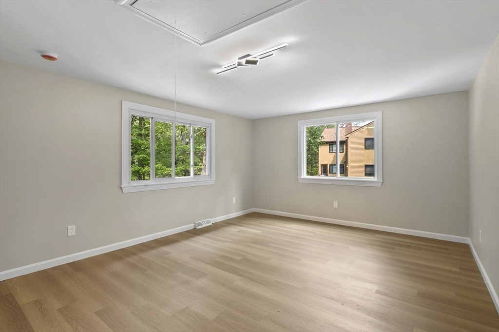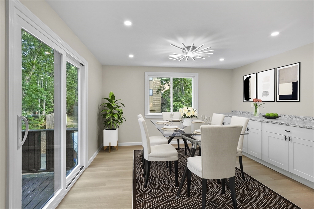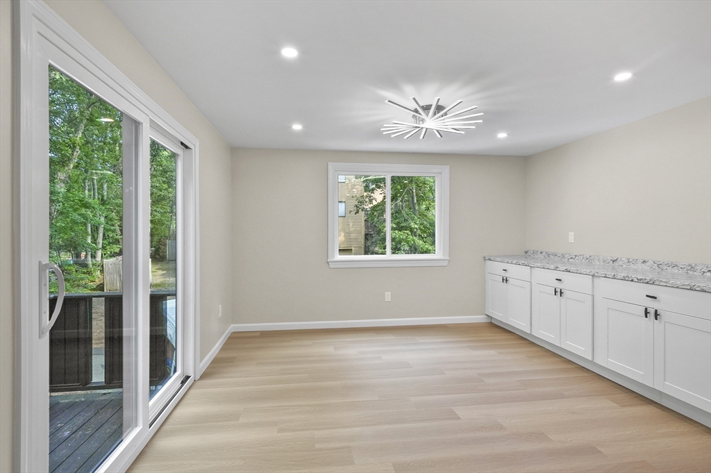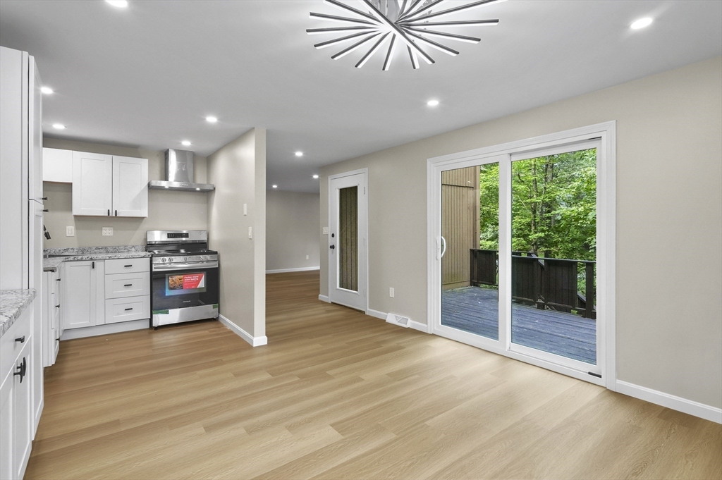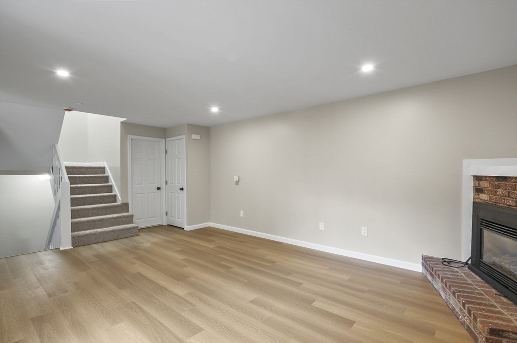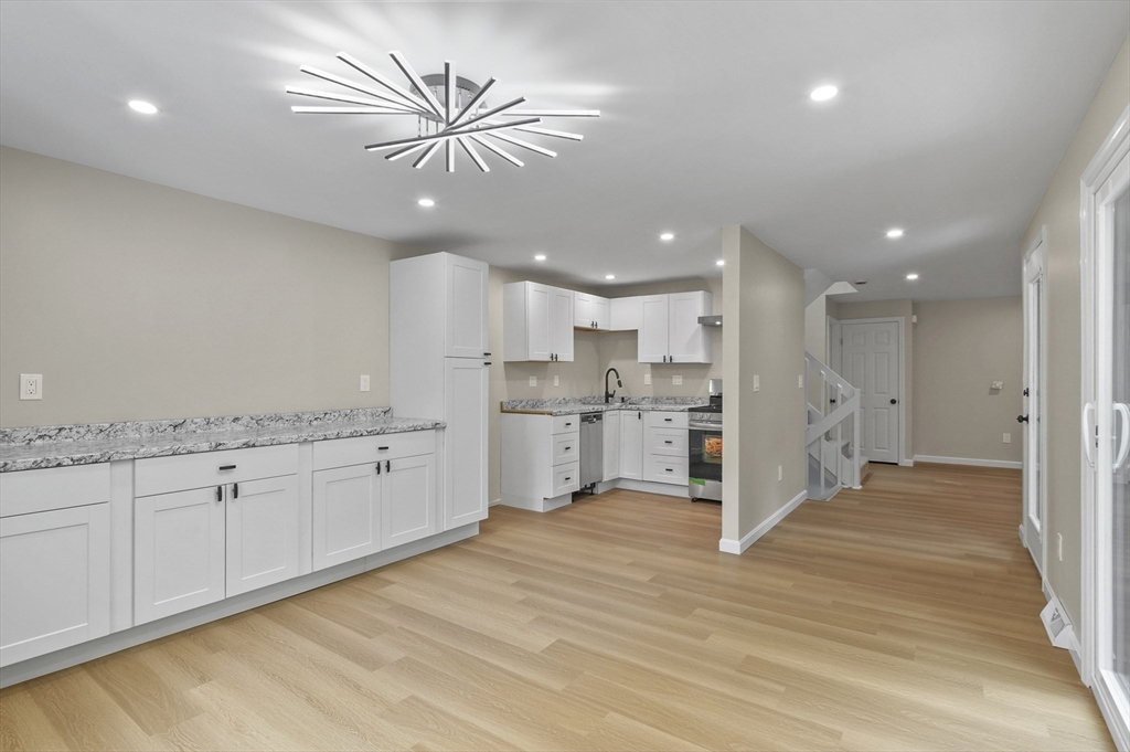 Welcome home to this beautifully updated condo, perfectly blending comfort and style! The open-concept kitchen and dining area showcase brand-new white shaker cabinets, stainless steel appliances, and recessed lighting. A sliding door off the dining space leads to a large front deck, ideal for morning coffee or evening relaxation. The bright, sun-filled living room features a cozy gas fireplace insert and additional recessed lighting, while a convenient half bath completes the main level. Upstairs, you’ll find two spacious bedrooms with ample closet space, along with a full bath featuring an updated vanity. The partially finished lower level offers a versatile bonus room plus a separate storage area. Additional highlights include paved parking, an attached one-car garage, and central air. Tucked away in a peaceful setting, yet close to all conveniences—your new home awaits!